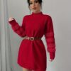 أناقة لافتة: فستان تونيك أحمر بياقة عالية وتصميم A-Line لكل مناسبة