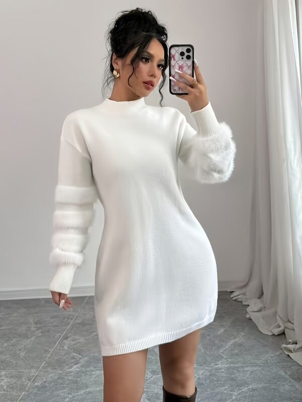 • تصميم فريد وجذاب: يتميز بقصة A-Line أنيقة تبرز جمال قوامك، مع ياقة عالية تضفي لمسة من الرقي، وتفاصيل حواف بيضاء متباينة تزيد من جاذبيته.