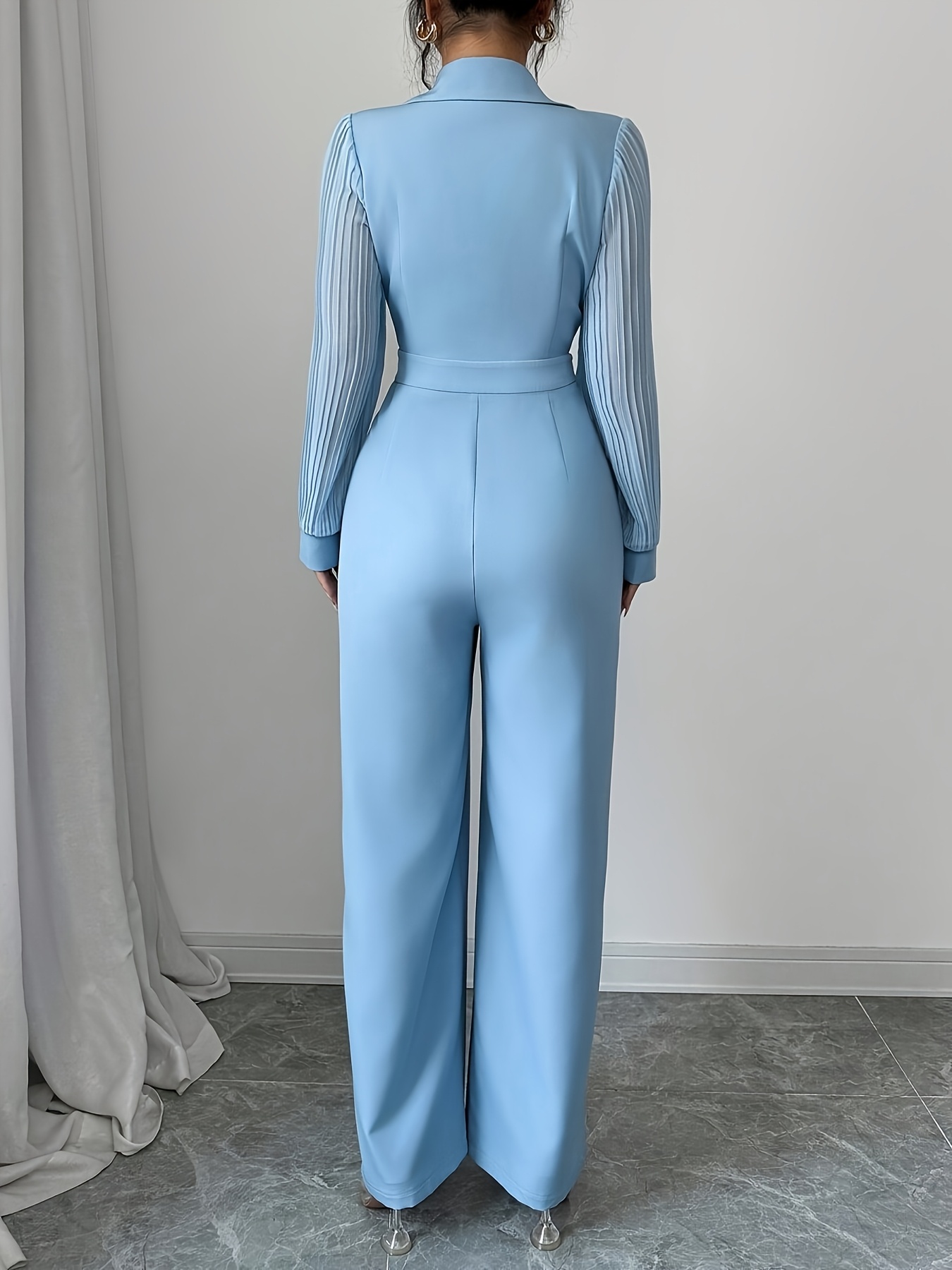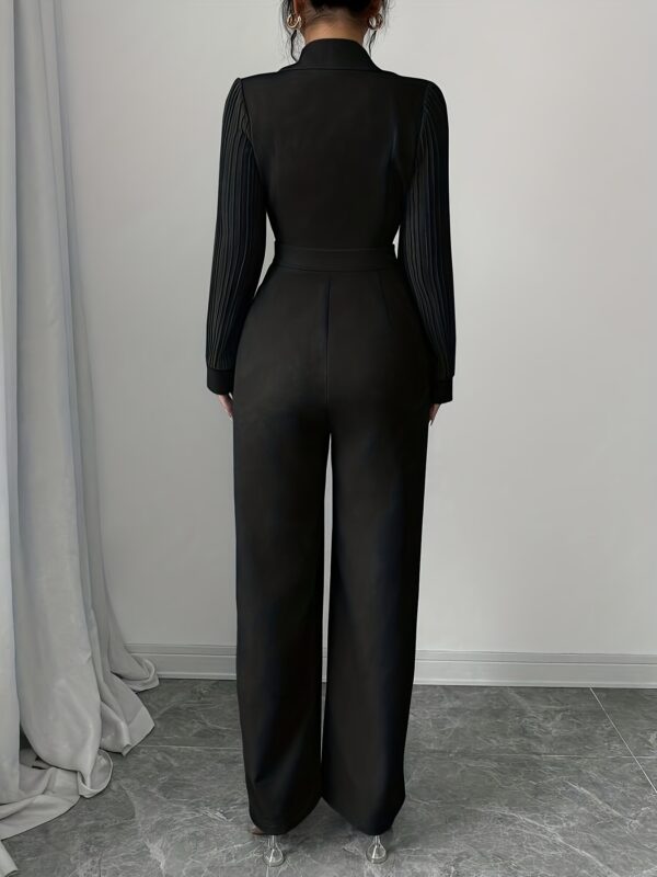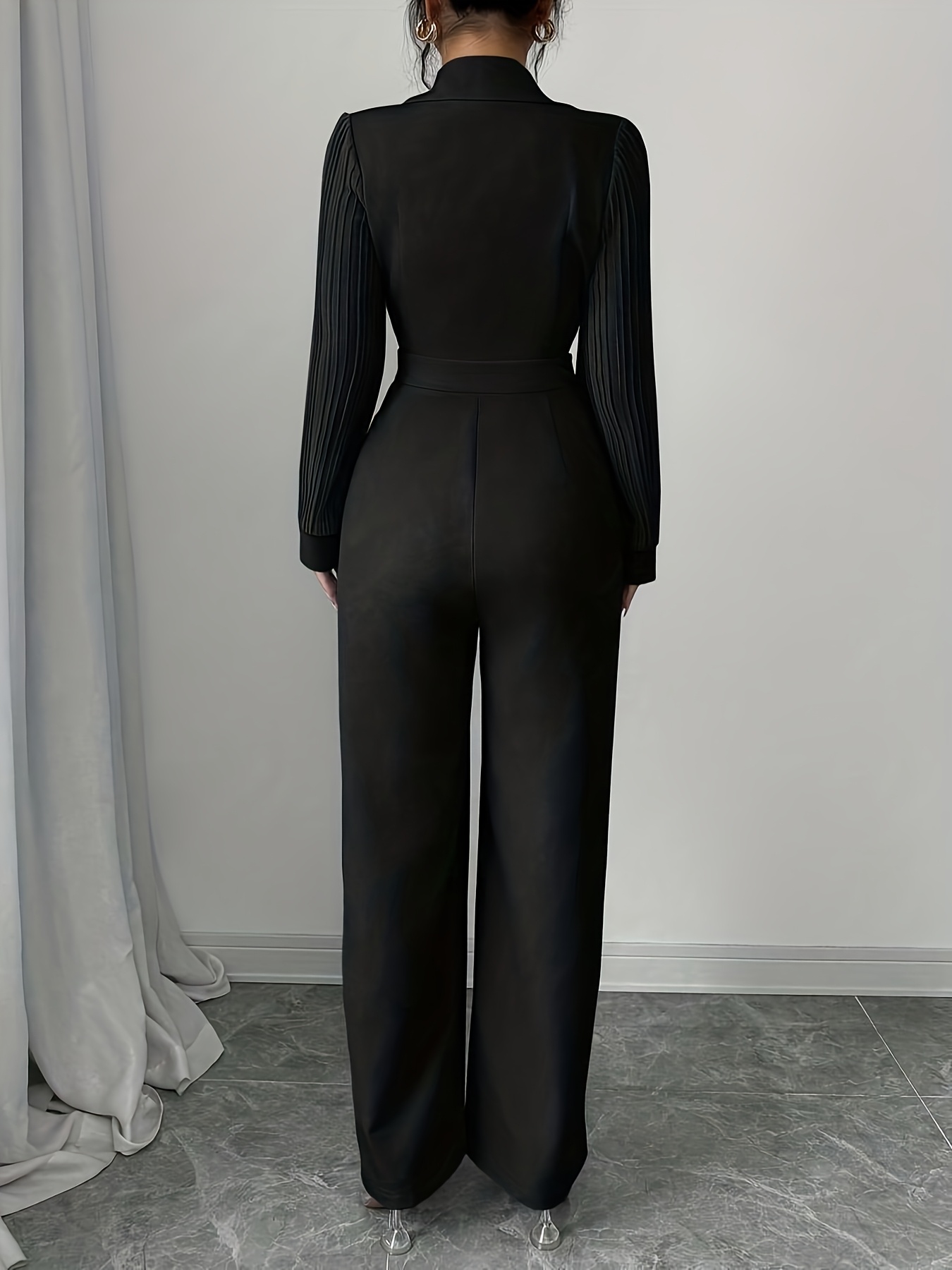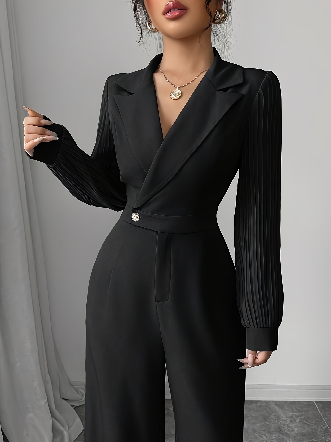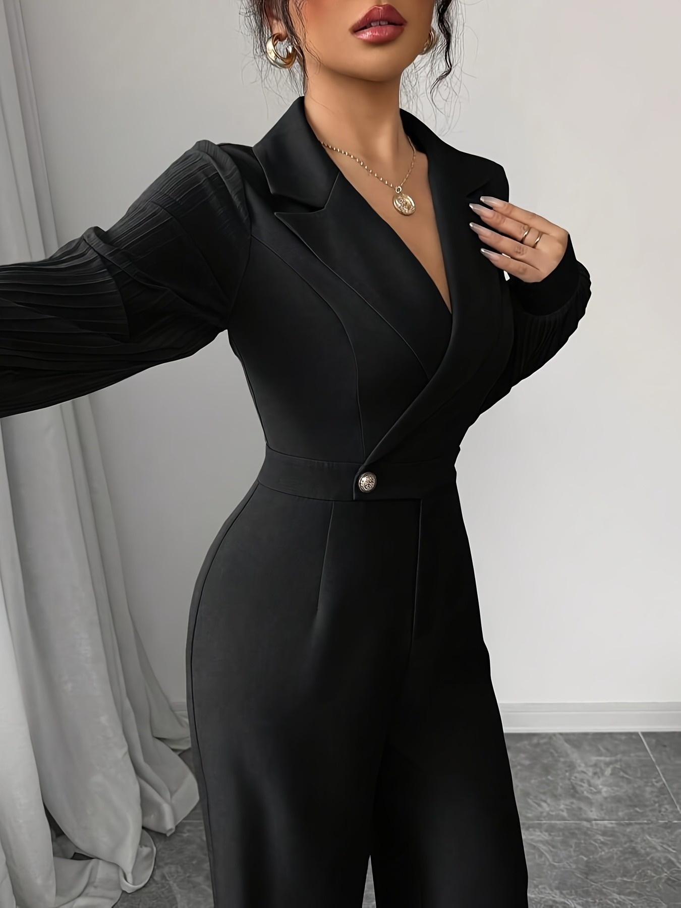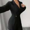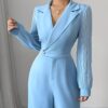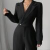 - تفاصيل أنيقة: يزدان الأفرول بصف من الأزرار الأمامية وياقة أنيقة على شكل طية صدر (لابل)، مما يضيف لمسة كلاسيكية عصرية.