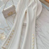 - تفاصيل أزرار ذهبية فاخرة: تضفي لمسة من الرقي والفخامة على التصميم العام، مما يجعله مثاليًا للمناسبات الخاصة واليومية.
