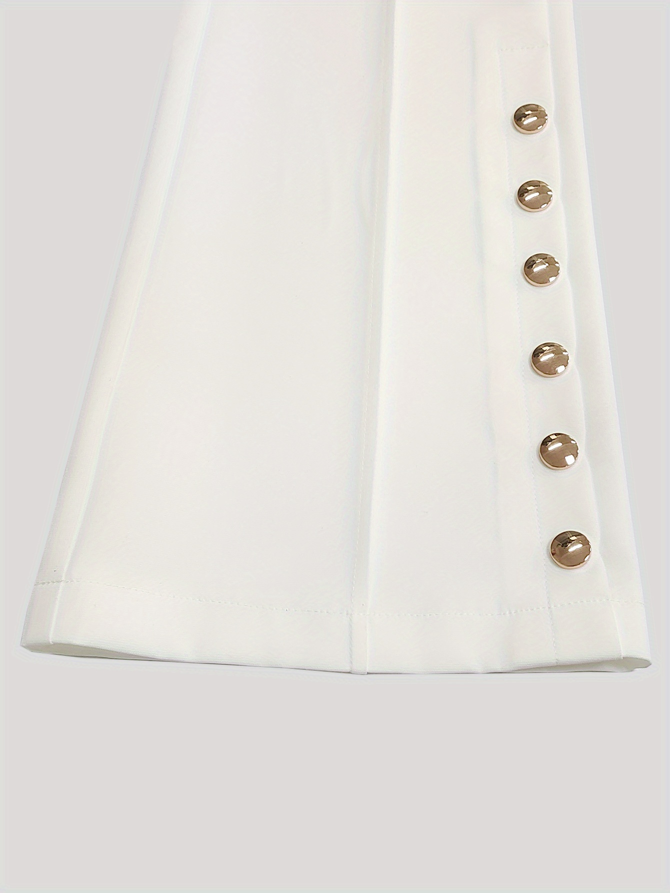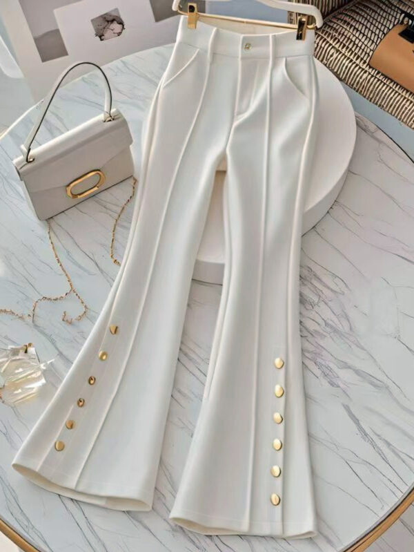 ارتقي بإطلالتك مع هذا البنطلون النسائي الأنيق بقصته المستقيمة ولونه الكريمي الجذاب، المصمم ليمنحكِ الراحة والأناقة في آن واحد. بخصره العالي وتفاصيله الذهبية الفاخرة، سيكون هذا البنطلون الإضافة المثالية لخزانة ملابسكِ، سواء كنتِ تستعدين ليوم عمل أو لمناسبة خاصة.
