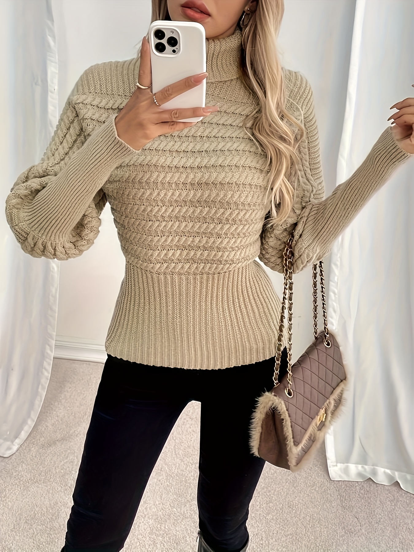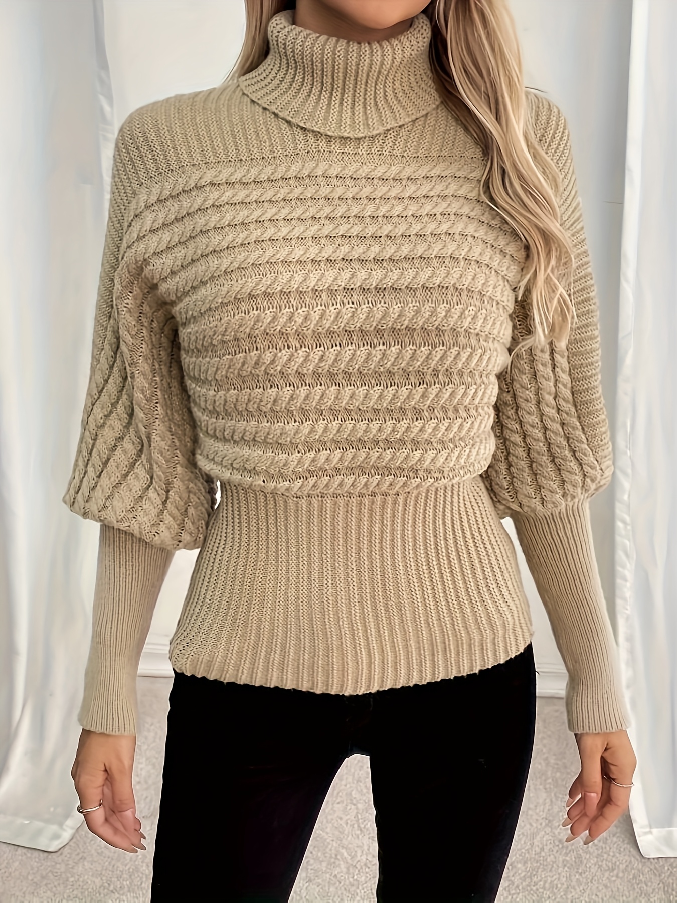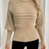 - تصميم فريد وجذاب: تتميز الكنزة بأكمامها الفانوسية العصرية التي تضفي لمسة من الأناقة والتميز على مظهرك، مع ياقة مستديرة كلاسيكية تضمن لكِ إطلالة متكاملة وراقية. قصتها الأنيقة تبرز جمال قوامك بأسلوب جذاب ومريح.
