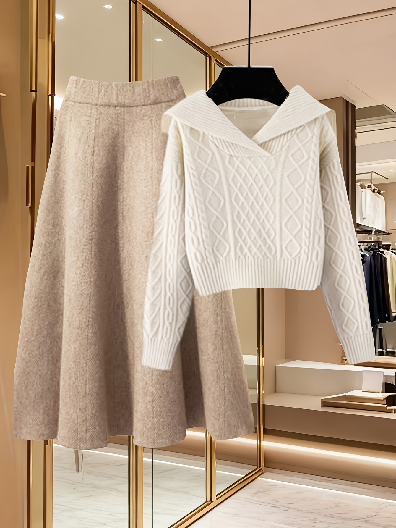 اكتشفي قمة الأناقة والراحة مع طقم السترة والتنورة النسائي هذا، المصمم خصيصًا ليرافقك في إطلالاتك الأنيقة والدافئة خلال موسمي الخريف والشتاء. يجمع هذا الطقم الفريد بين التصميم العصري والجودة الفائقة، ليمنحك حضورًا لا يُنسى وشعورًا بالثقة في كل مناسبة.