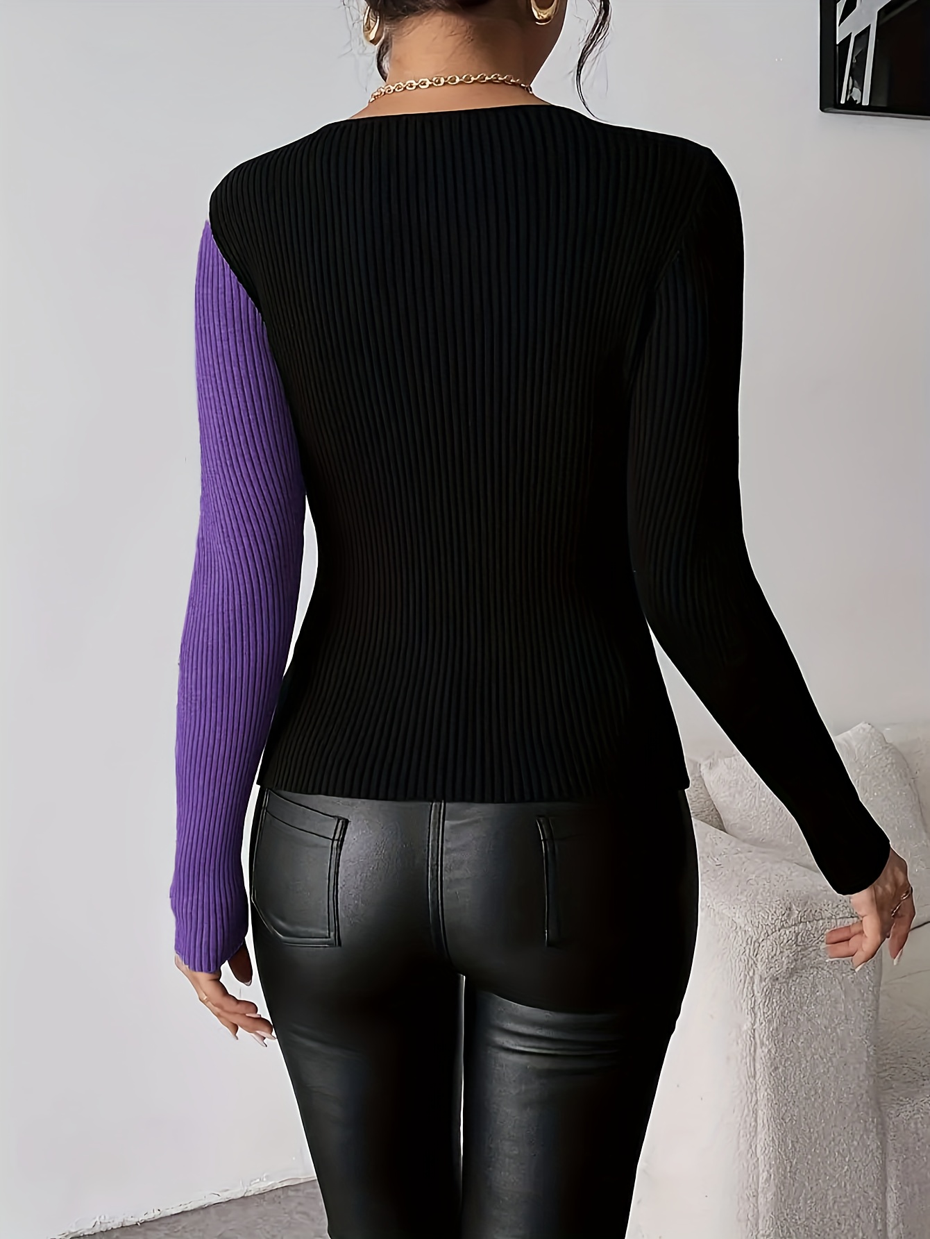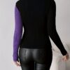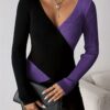 - لمسة عصرية: تصميم كتل الألوان المذهل باللون البنفسجي مع قصة متقاطعة فريدة تضمن لك إطلالة جريئة ومميزة.