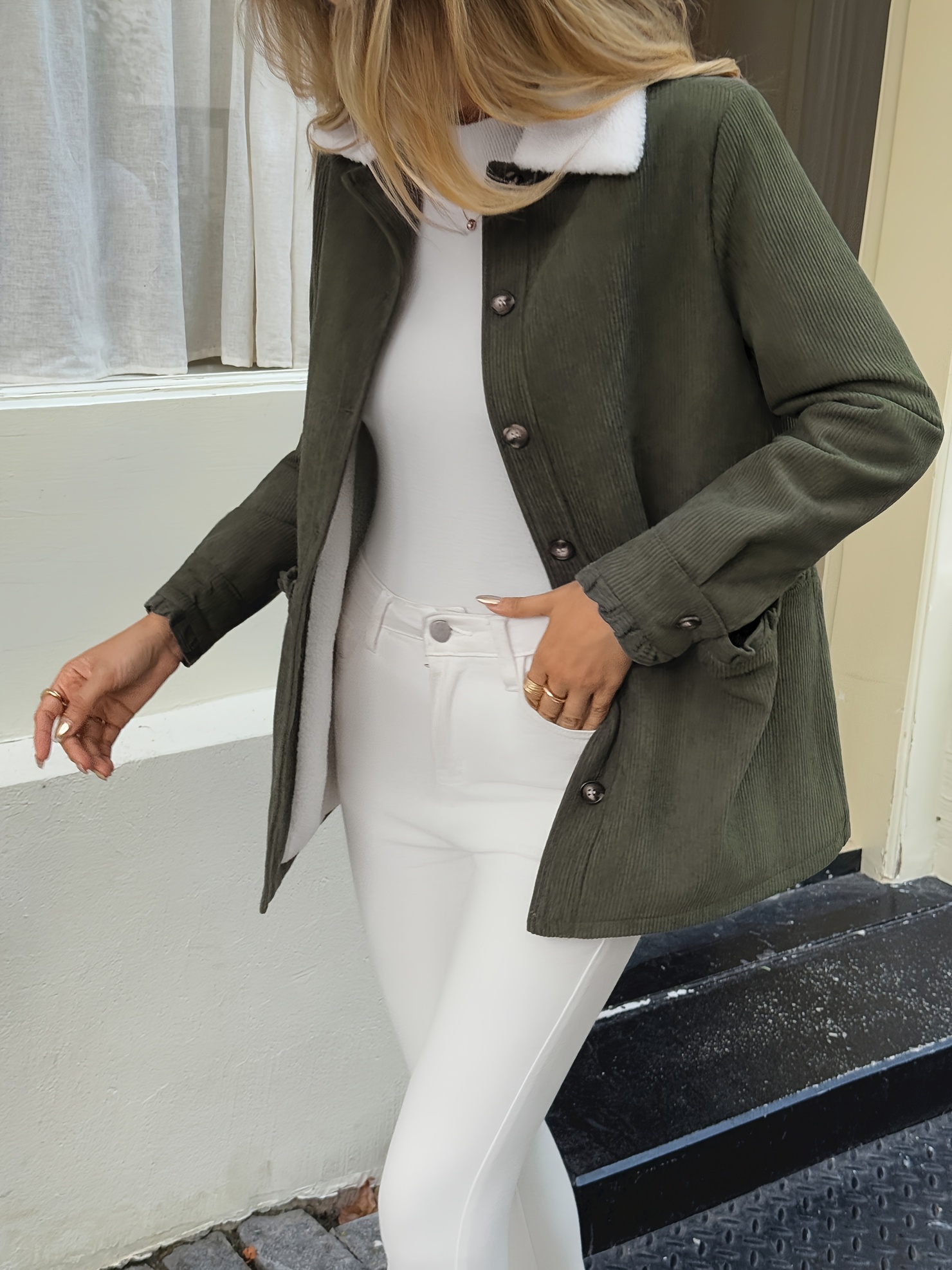 • إغلاق أمامي كامل بأزرار: تصميم أنيق وعملي بزر أمامي كامل يوفر حماية إضافية من الرياح الباردة ويضفي لمسة كلاسيكية خالدة على مظهرك.