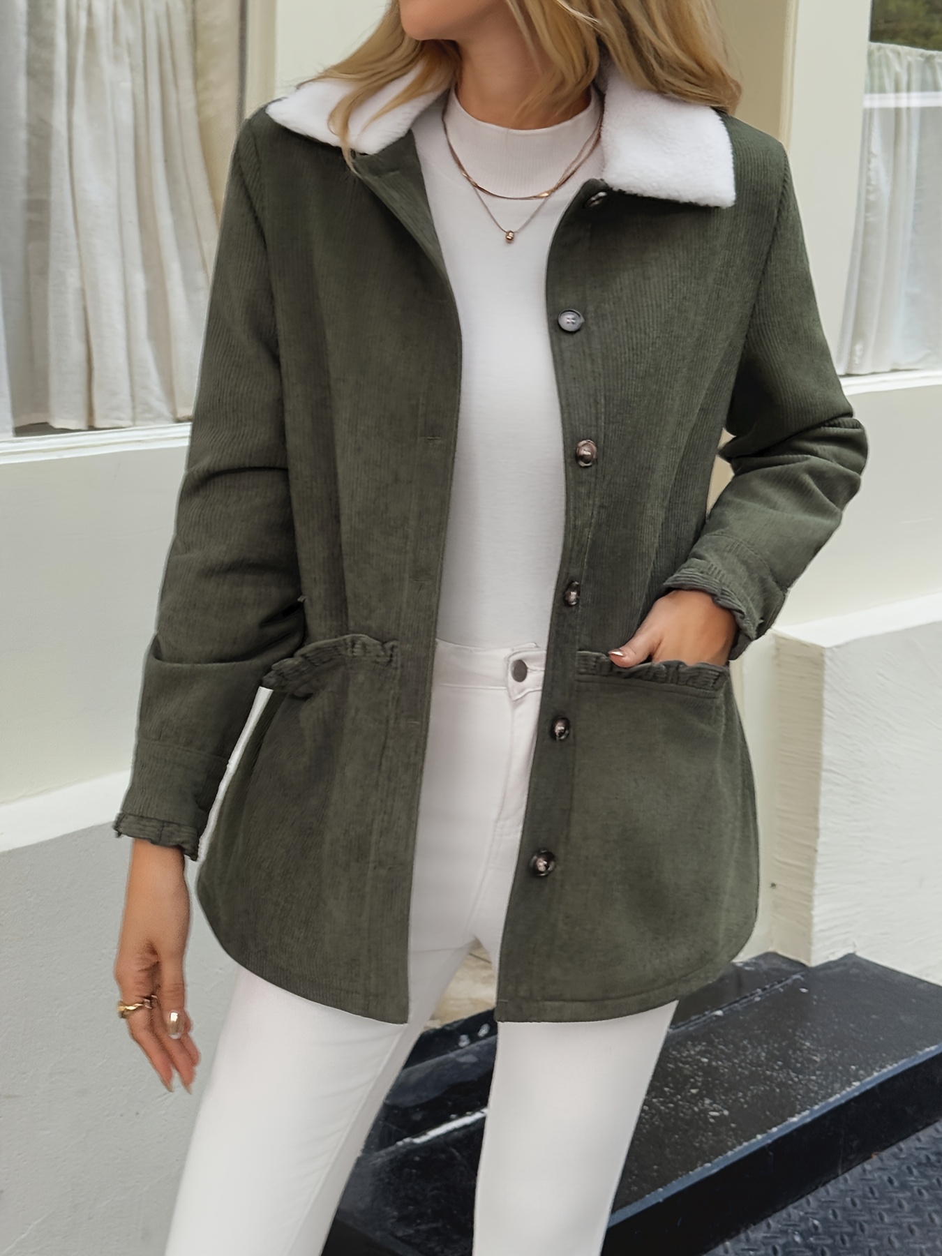 معطف نسائي شتوي فاخر: أناقة دافئة وياقة عريضة مميزة