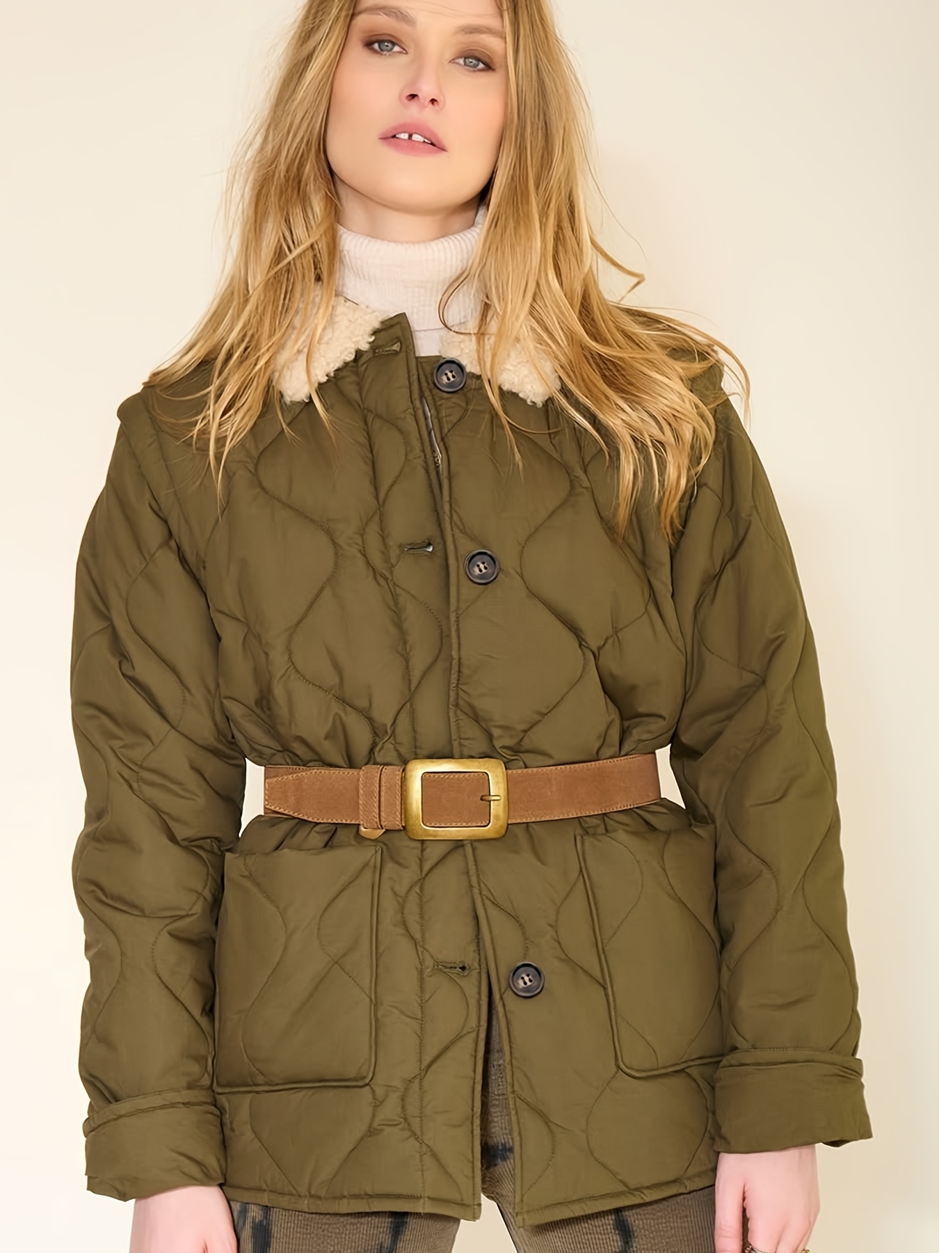 - قصة مريحة وعملية: بتصميم بطول عادي وأكمام عادية، يوفر هذا المعطف قصة مريحة تسمح لكِ بالحركة بحرية، مما يجعله مثاليًا للارتداء اليومي أو للمناسبات الخاصة.