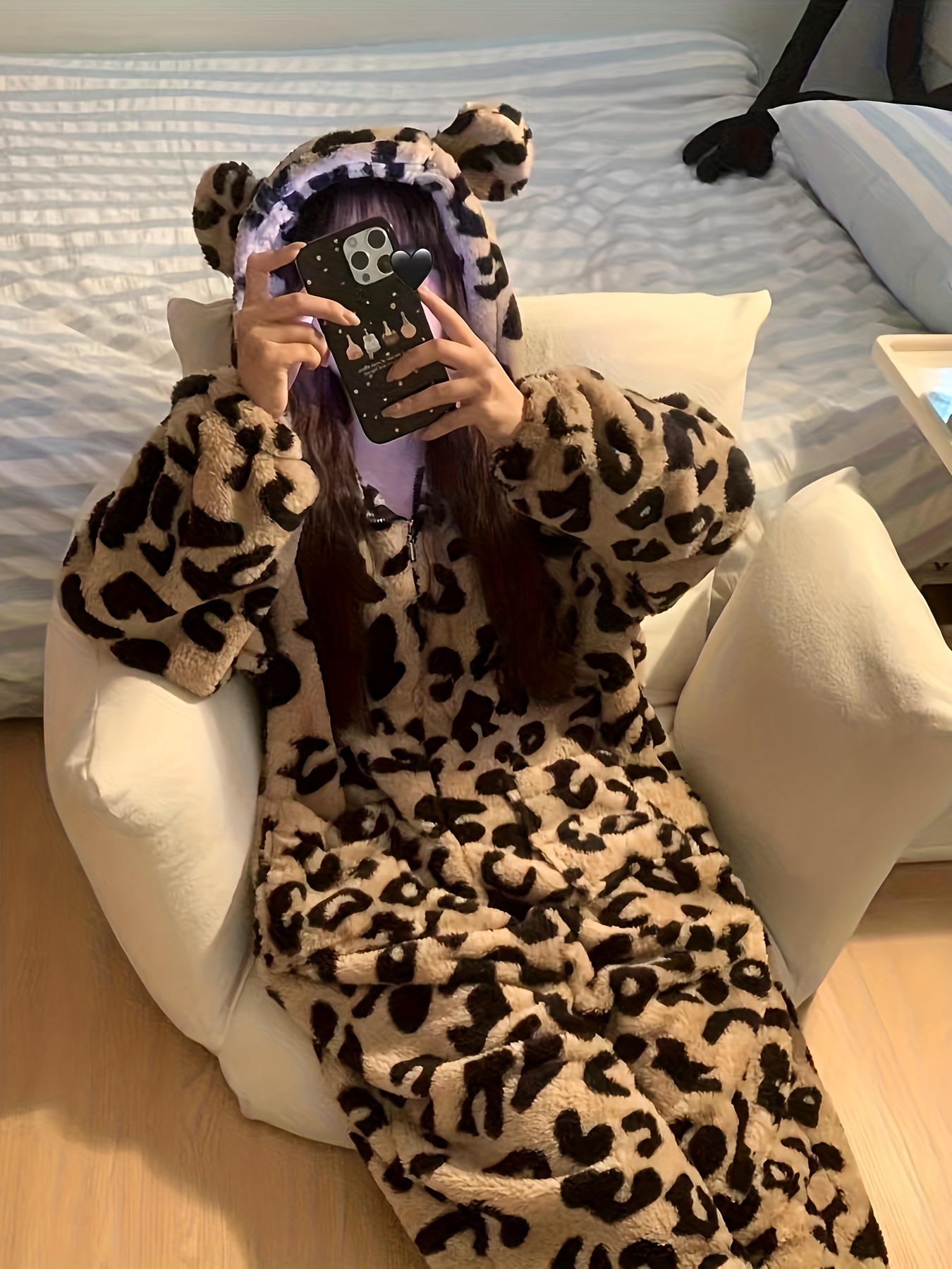 مع حلول ليالي الشتاء الباردة، تبحثين عن الدفء والأناقة معًا؟ نقدم لكِ الحل الأمثل الذي يجمع بين الراحة المطلقة والجاذبية العصرية! استعدي لاحتضان الدفء والتميز مع بيجامة الليوبارد الفاخرة بقلنسوة، المصممة خصيصًا لتمنحكِ تجربة لا تُنسى في منزلكِ وخارجه.
