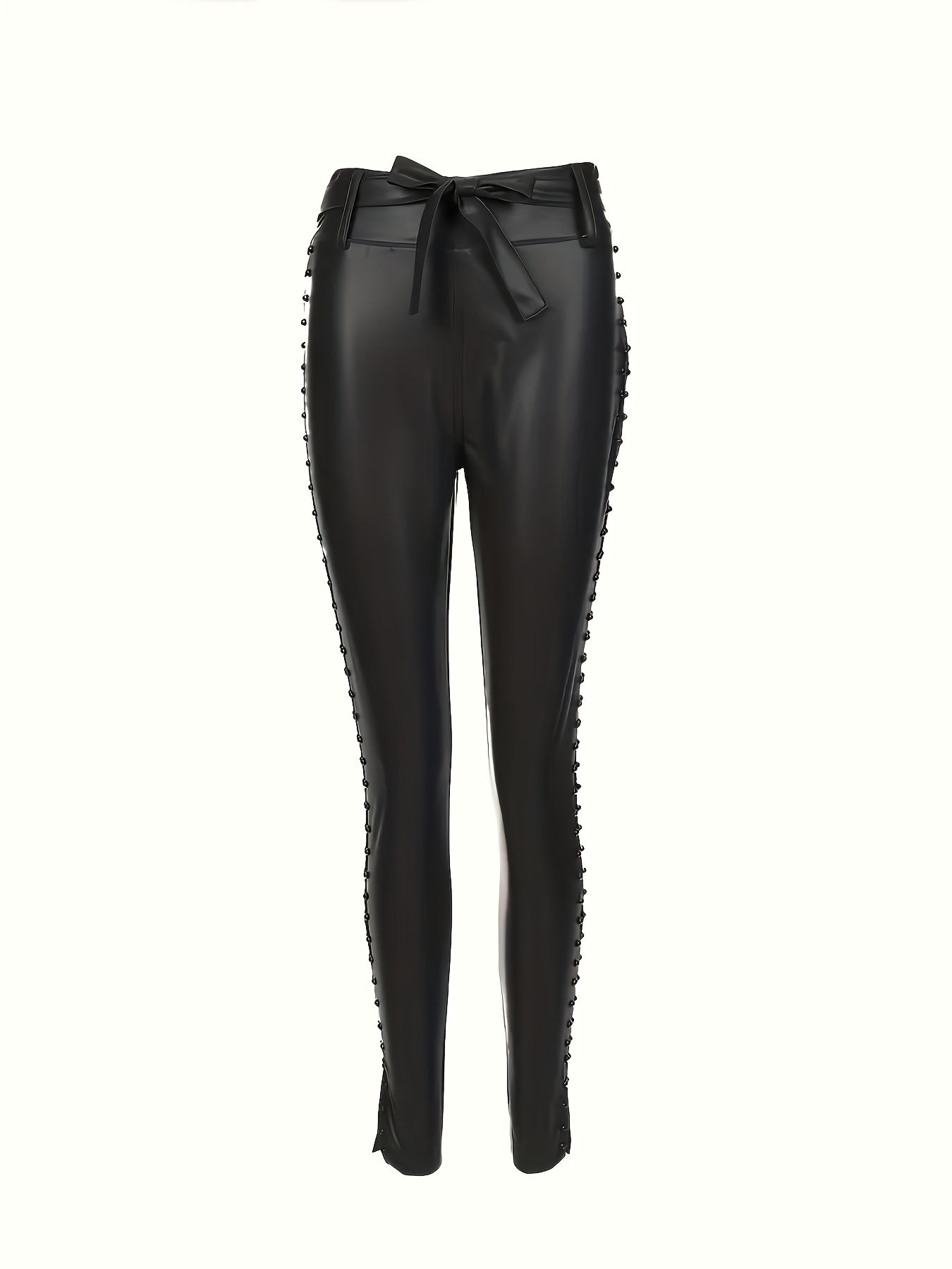 جاذبية متكاملة: بنطلون نسائي من الجلد الصناعي بخصر عالٍ وحزام