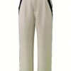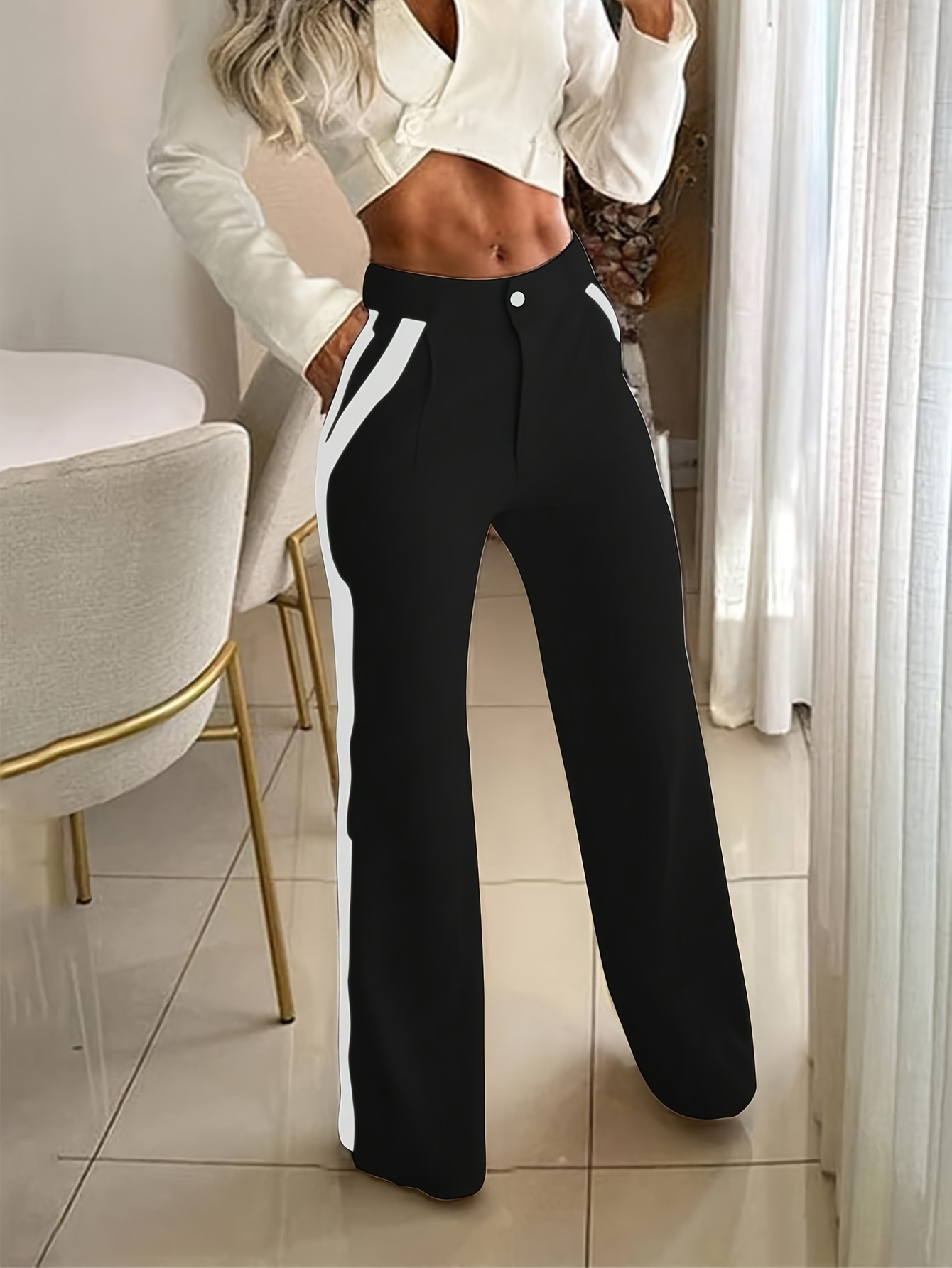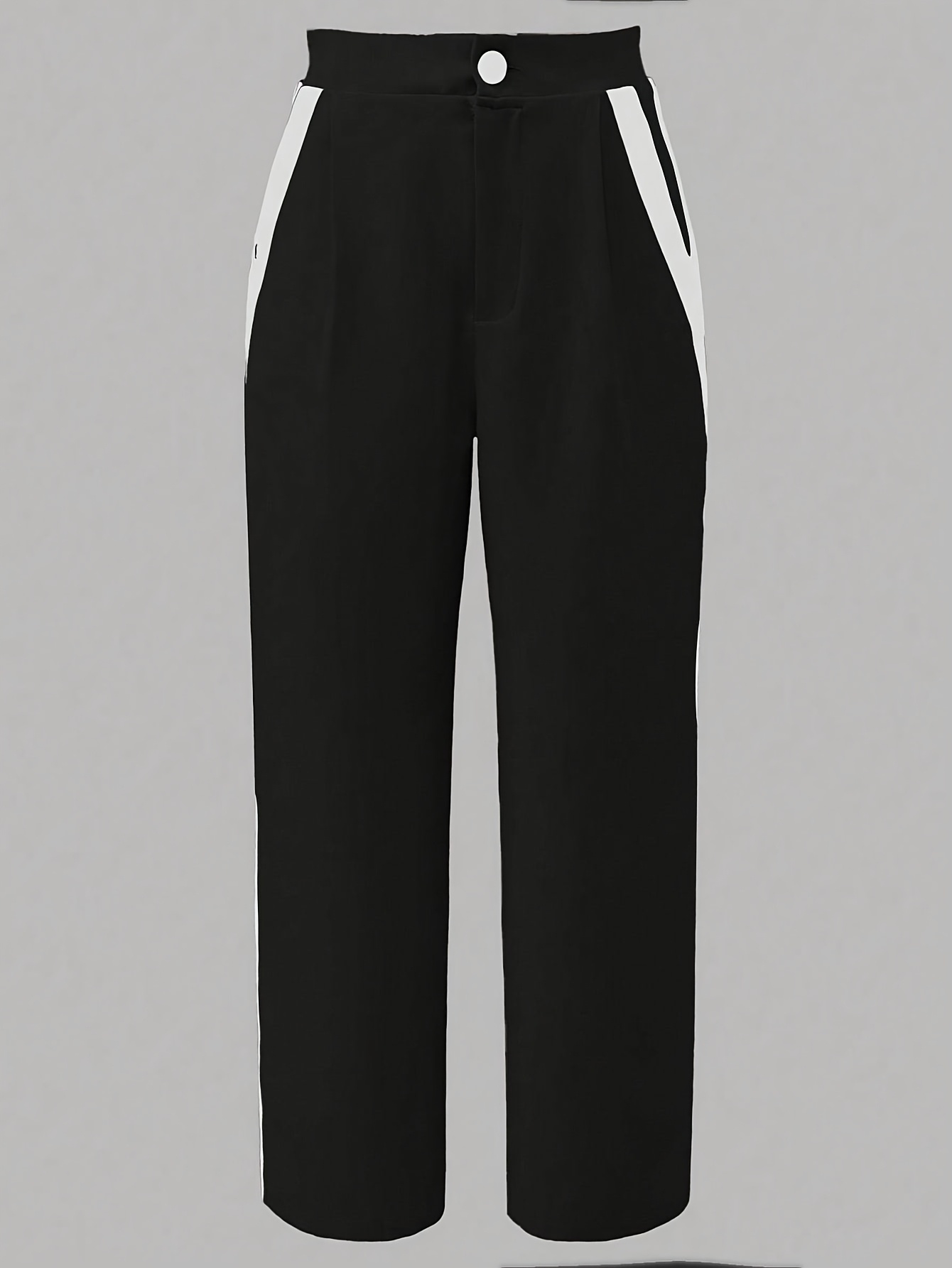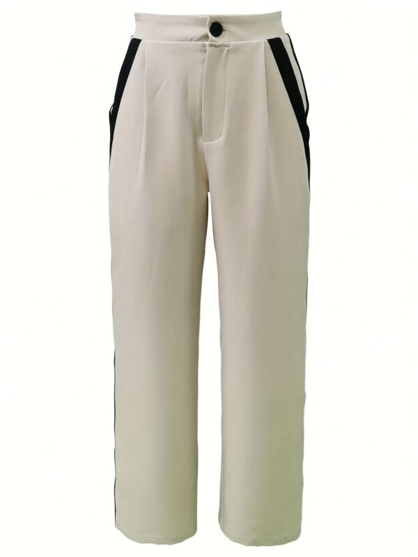 تألقي بأسلوب لا يُضاهى مع هذا البنطلون النسائي الأنيق ذي الخصر العالي والقصة المستقيمة، المصمم ليمنحكِ إطلالة عصرية ومتكاملة في كل مناسبة. بلونه البيج السادة الجذاب وتفاصيله الفريدة من الحواف البيضاء والأساور المخططة بالأسود، يمثل هذا البنطلون قطعة أساسية لا بد منها في خزانة ملابسك، فهو يجمع بين الأناقة الراقية والراحة المثالية.