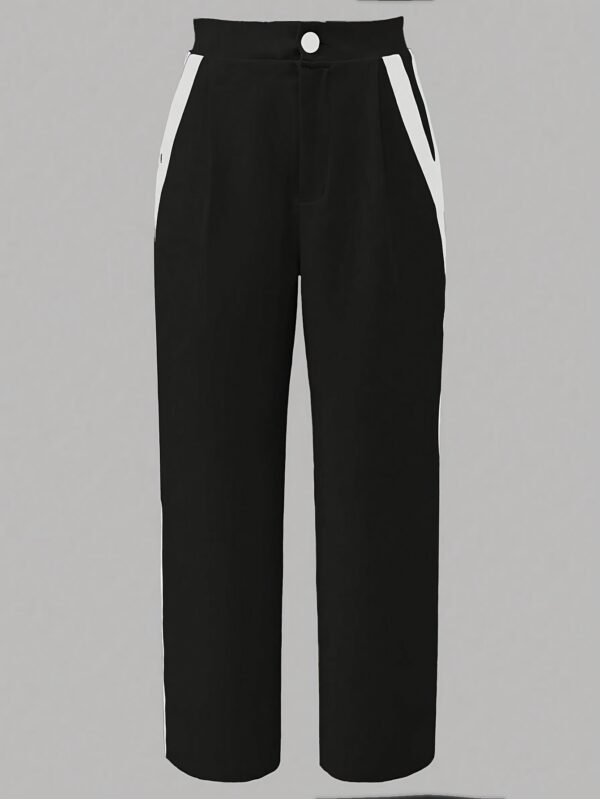 - تصميم أنيق ومحدد: يتميز بخصر عالٍ يبرز جمال قوامك وقصة مستقيمة كلاسيكية تضفي لمسة من الرقي، مما يجعله الخيار الأمثل لإطلالات متعددة تتراوح بين العملية والرسمية.