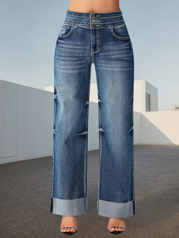 - خصر عالٍ وقصة مستقيمة: يبرز جمال قوامك ويمنحك مظهراً رشيقاً وجذاباً، مع قصة أرجل مستقيمة عصرية.