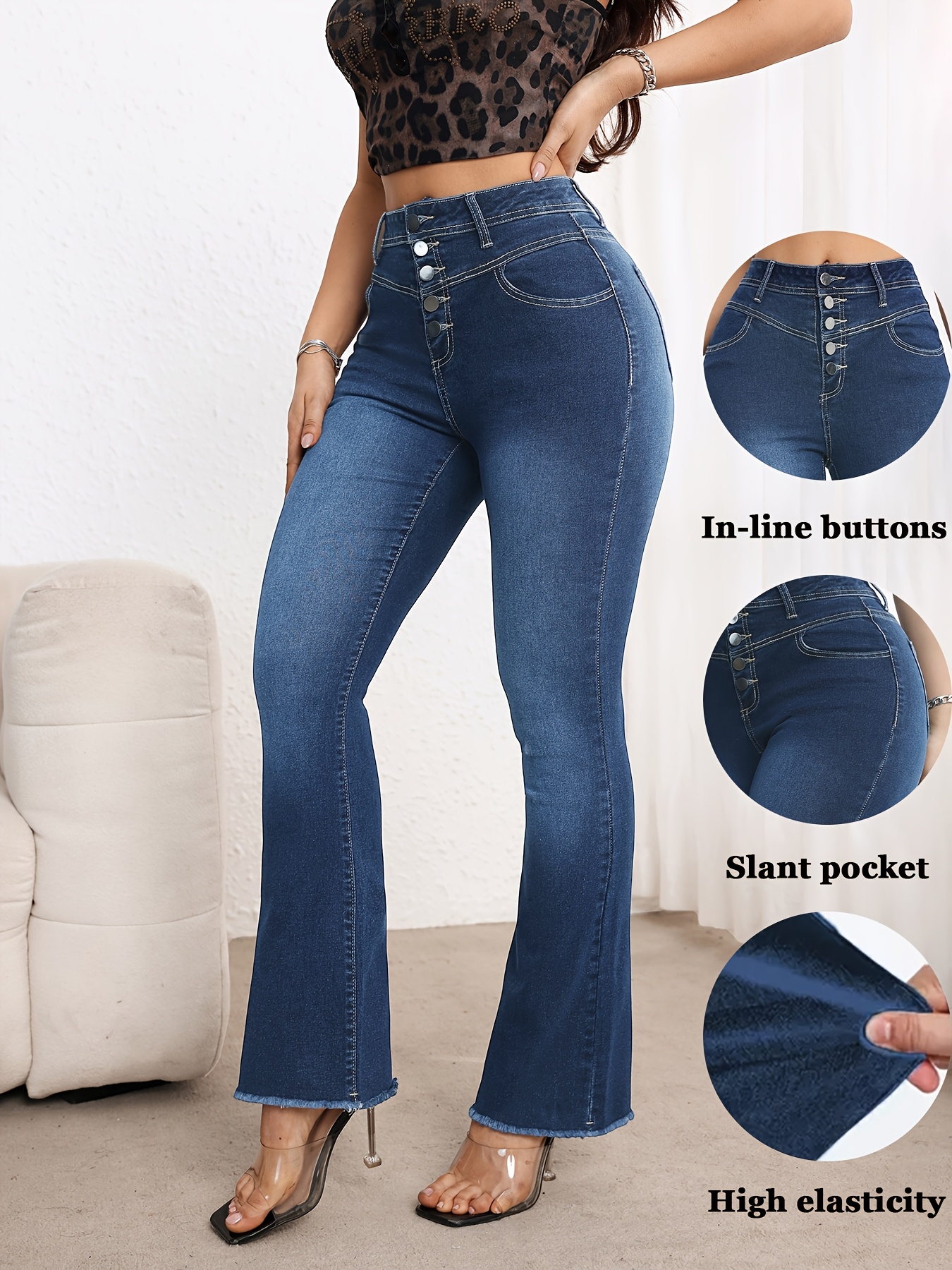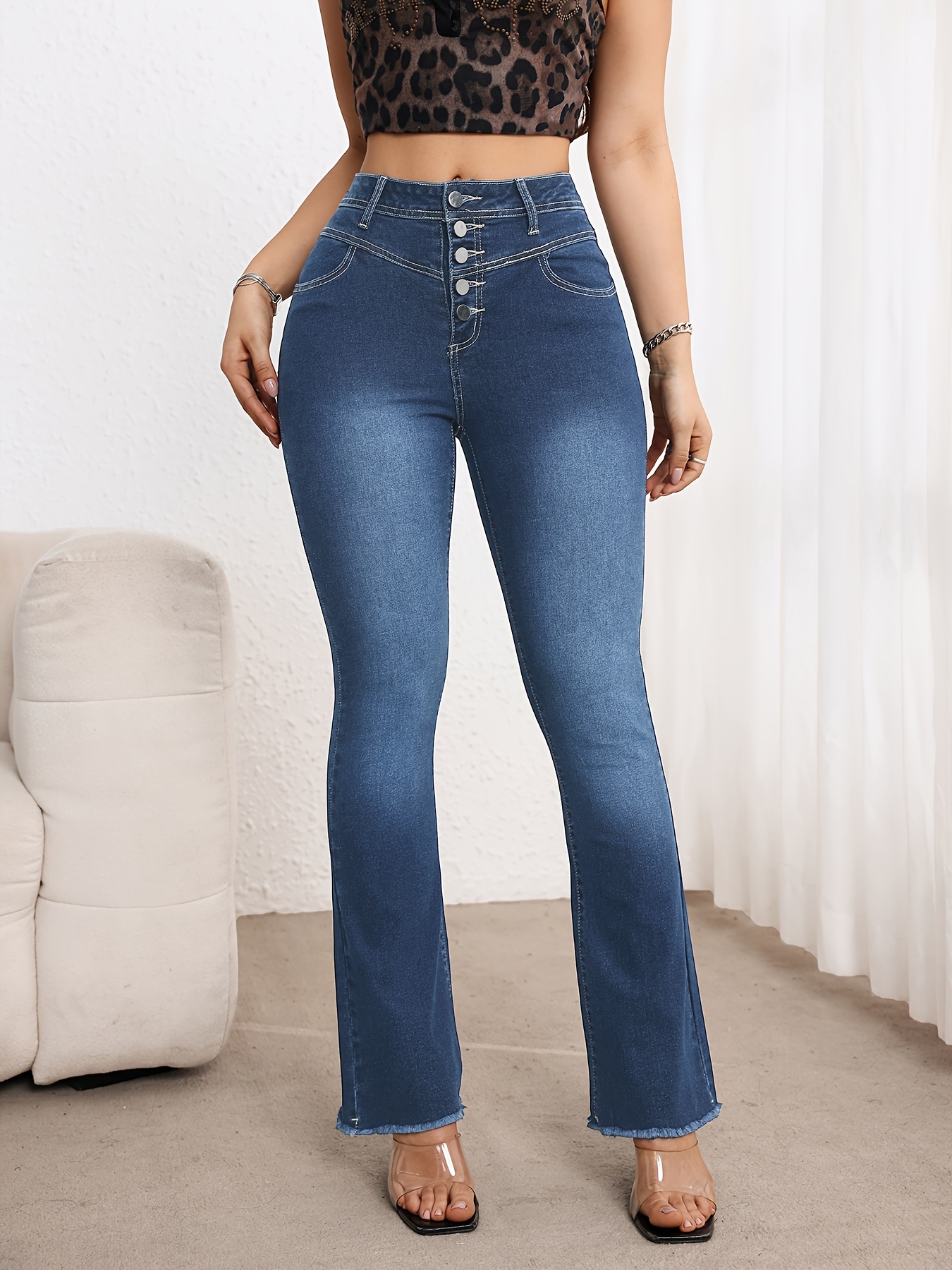 تألقي بأناقة عصرية: جينز فلير نسائي بخصر مرتفع ومرونة فائقة
