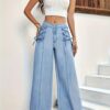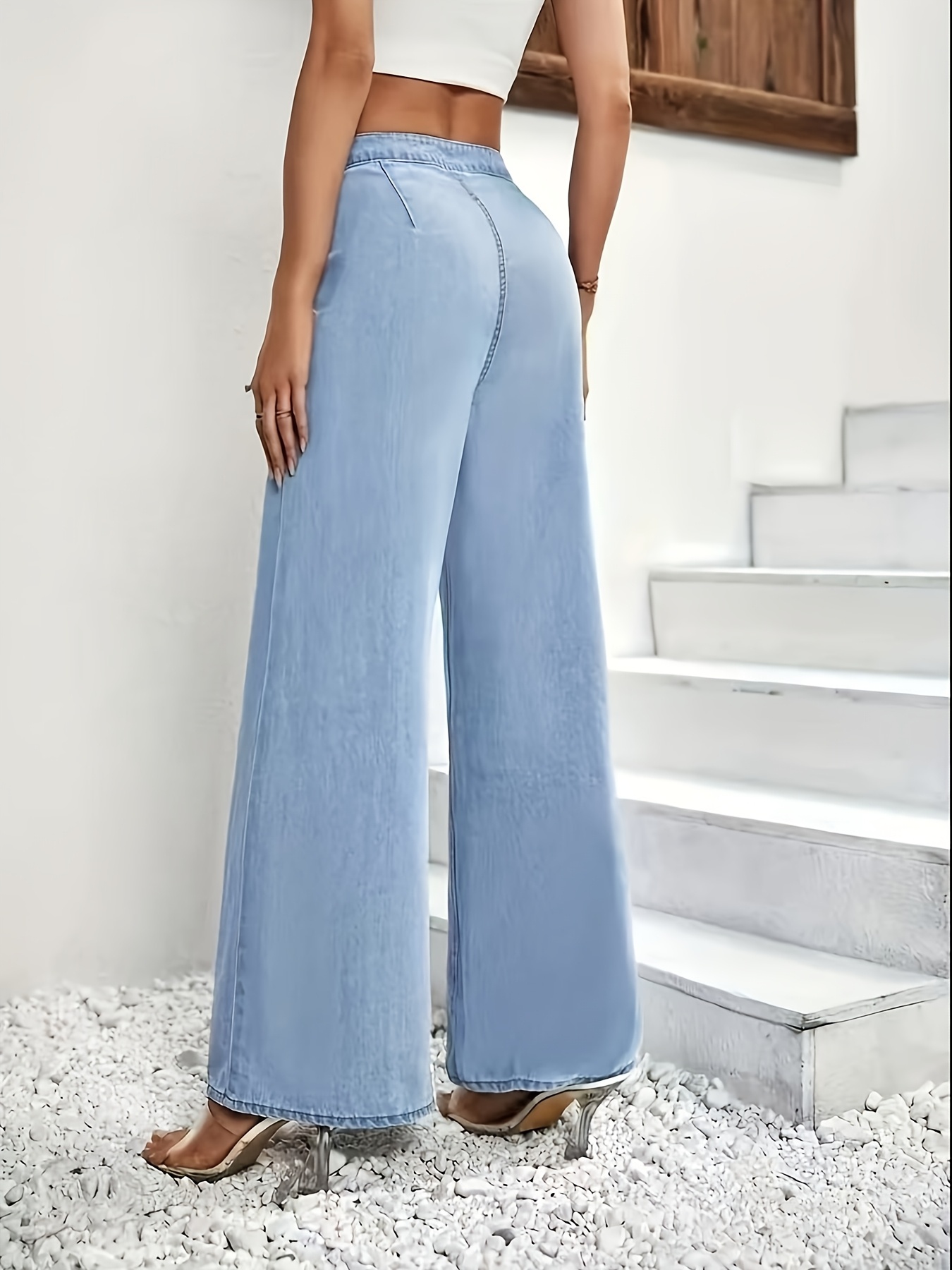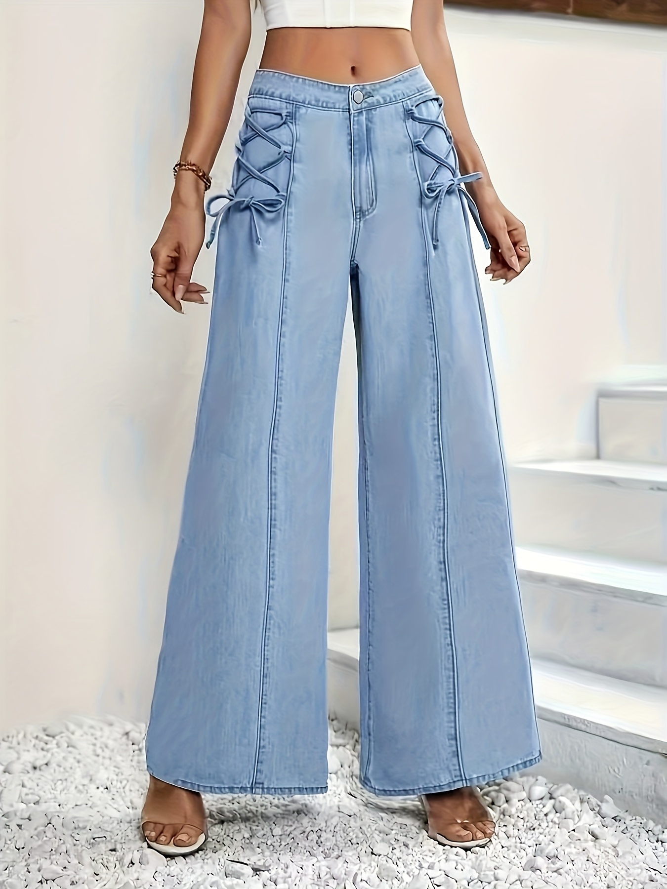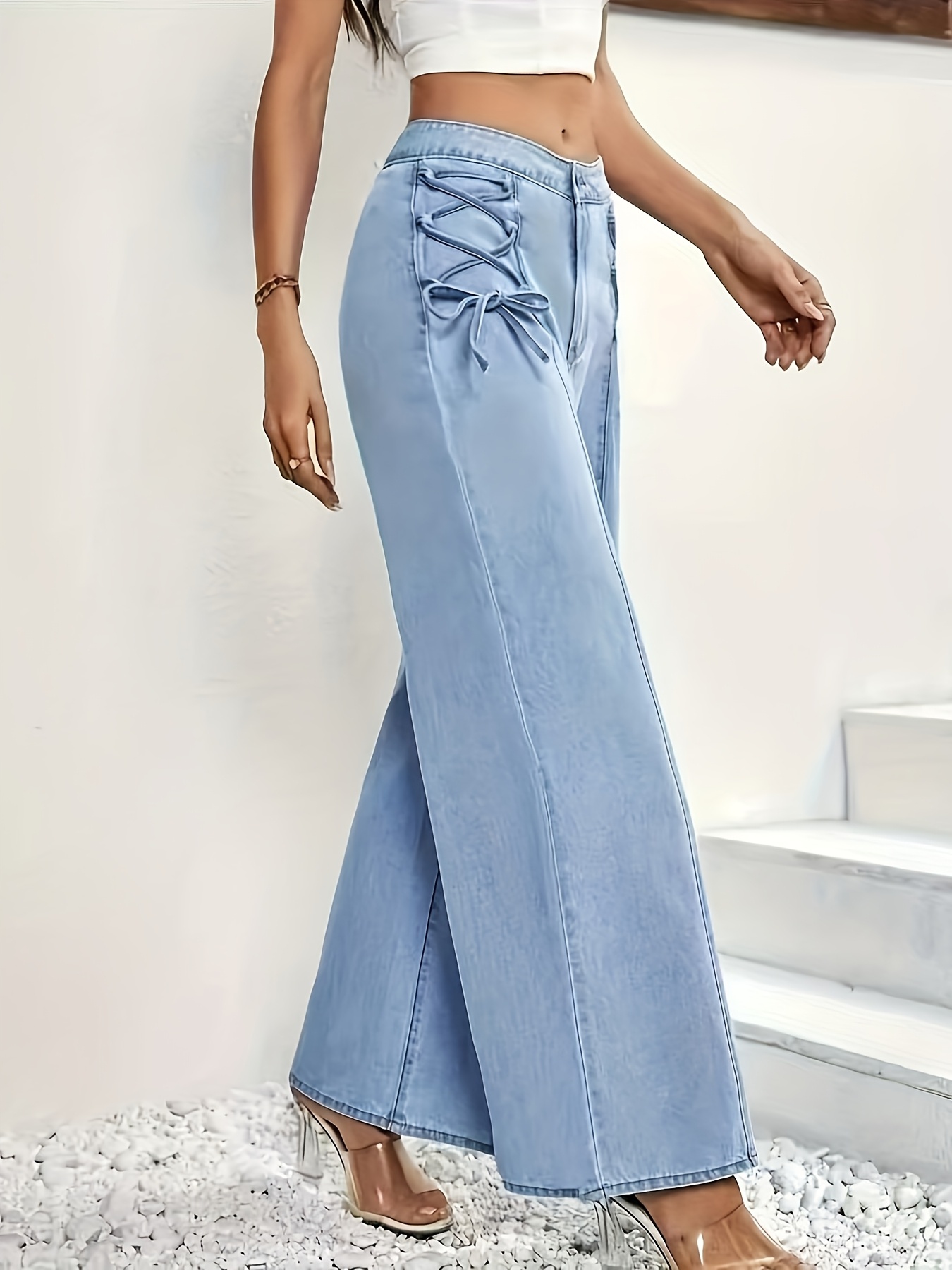 اكتشفي الأناقة العصرية والراحة المطلقة مع بنطلون الجينز النسائي البوهيمي الواسع الساق. مصمم ليمنحك إطلالة فريدة وجذابة، هذا الجينز هو الإضافة المثالية لخزانة ملابسك، مناسب لجميع فصول السنة ومثالي لمختلف المناسبات، من النزهات اليومية إلى المواعيد الخاصة.