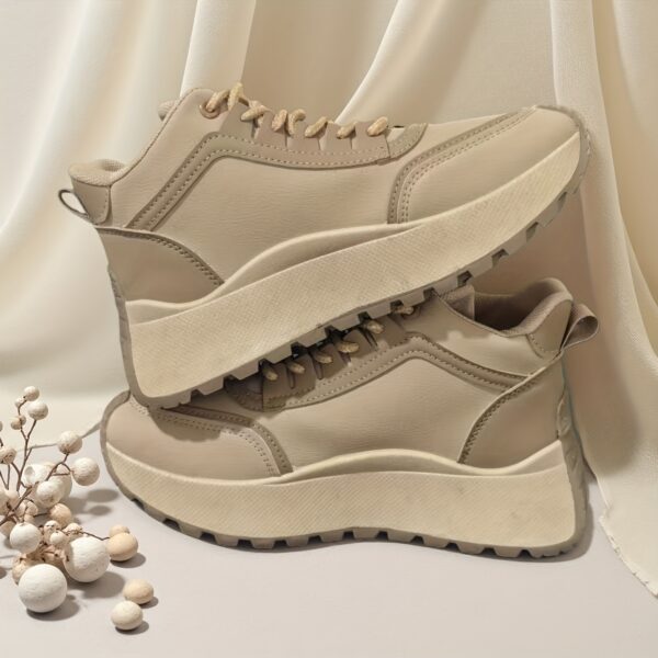 لكل امرأة تبحث عن الأناقة التي لا تضحي بالراحة، نقدم لكِ الحذاء الرياضي البيج الجديد الذي يجمع بين التصميم العصري والأداء العملي. اجعلي كل خطوة تعبر عن ذوقكِ الرفيع وثقتكِ بنفسكِ مع هذا الحذاء الفريد، المصمم ليناسب إيقاع حياتكِ اليومية والمناسبات الخاصة.