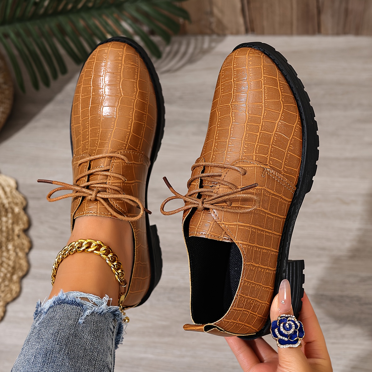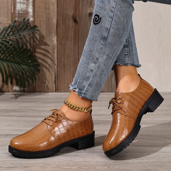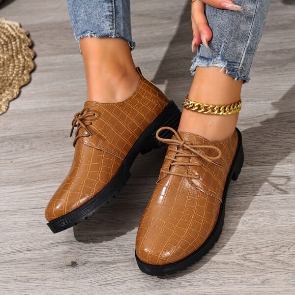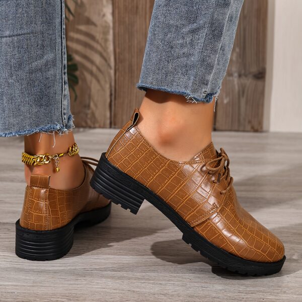 - أناقة بريطانية لا تضاهى: تصميم كلاسيكي فاخر على طراز ماري جين، بلون بني لامع وجذاب يجعلكِ محط الأنظار في كل مكان.