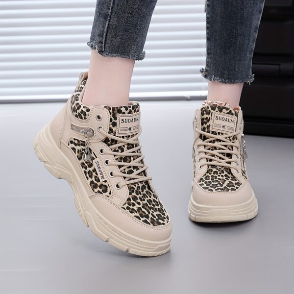 استعدي لتميز لا مثيل له مع حذائنا الرياضي الجديد الذي يجمع بين الأناقة العصرية والراحة المطلقة. مصمم خصيصًا للمرأة التي لا تخشى التعبير عن أسلوبها الفريد وتعتمد الجرأة في اختياراتها. بمزيج فريد من نقشة الفهد الجريئة وتدرجات الأزرق والأبيض الأنيقة، بالإضافة إلى التصميم العالي الرقبة والنعل السميك، ستجذبين الأنظار في كل مكان تذهبين إليه، مع ضمان راحة قدميكِ طوال اليوم.