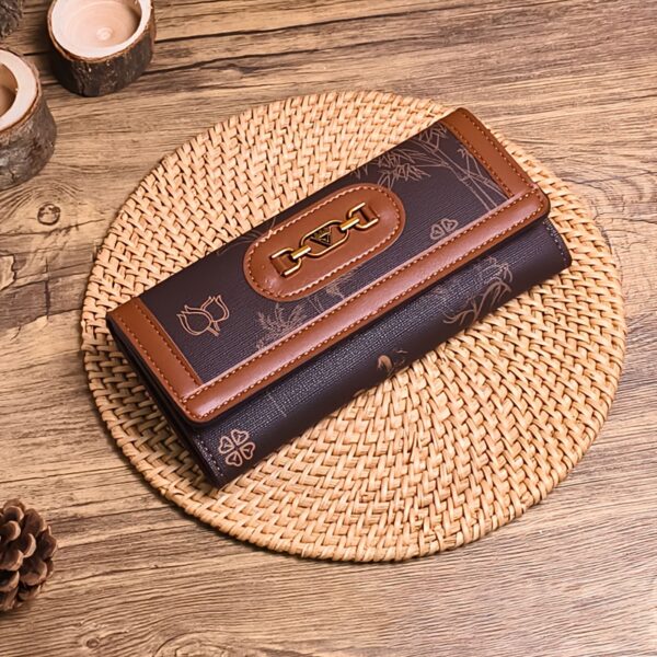 - تصميم أنيق وعصري: بلون البني الكوفي الفاخر، تضفي هذه المحفظة لمسة من الرقي على أي إطلالة، سواء كانت رسمية أو يومية أو للسفر.