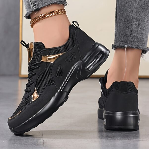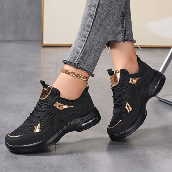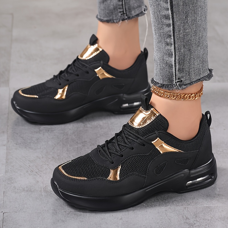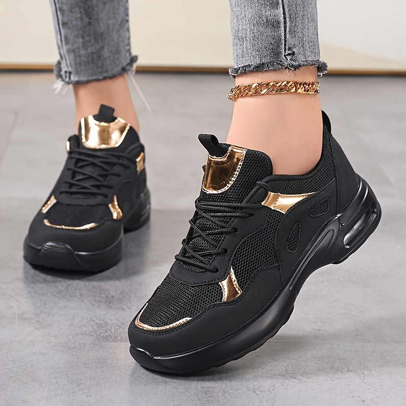 هل تبحثين عن الحذاء المثالي الذي يجمع بين الأناقة العصرية والراحة المطلقة؟ نقدم لكِ الحذاء الرياضي النسائي بتصميمه الساحر باللون الأسود واللمسات الذهبية الفاخرة، رفيقكِ الأمثل لكل مناسباتكِ. استعدي لتخطفي الأنظار وتشعري بالراحة في كل خطوة مع هذا الحذاء الفريد.