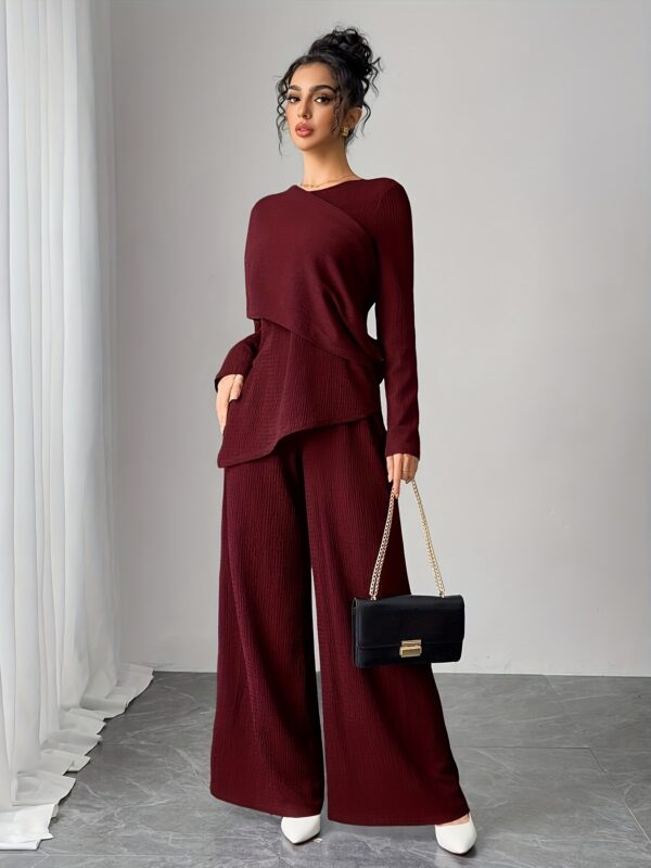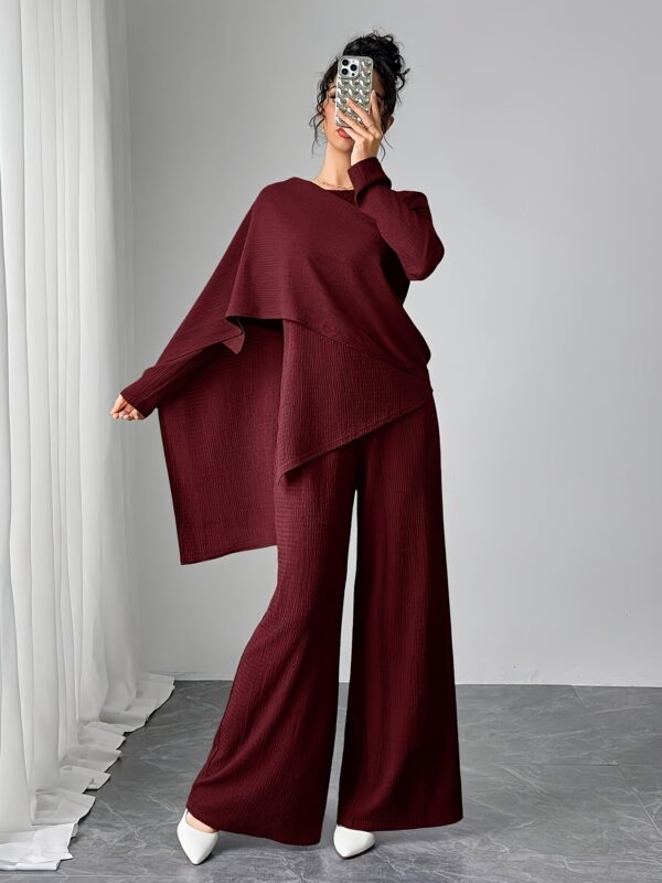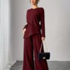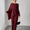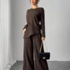 - أناقة تدوم طويلاً: بفضل تصميمه الكلاسيكي بلون موحد وقصة مريحة بياقة دائرية وأكمام طويلة، يضمن لكِ هذا الطقم إطلالة أنيقة وعصرية لا تتأثر بمرور الزمن، مثالي لمواسم الخريف والشتاء.