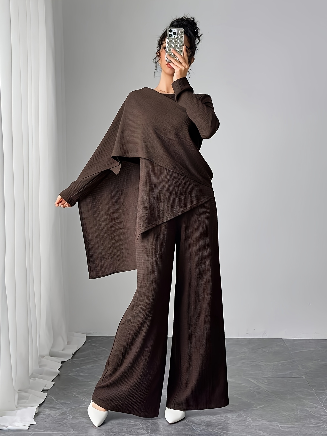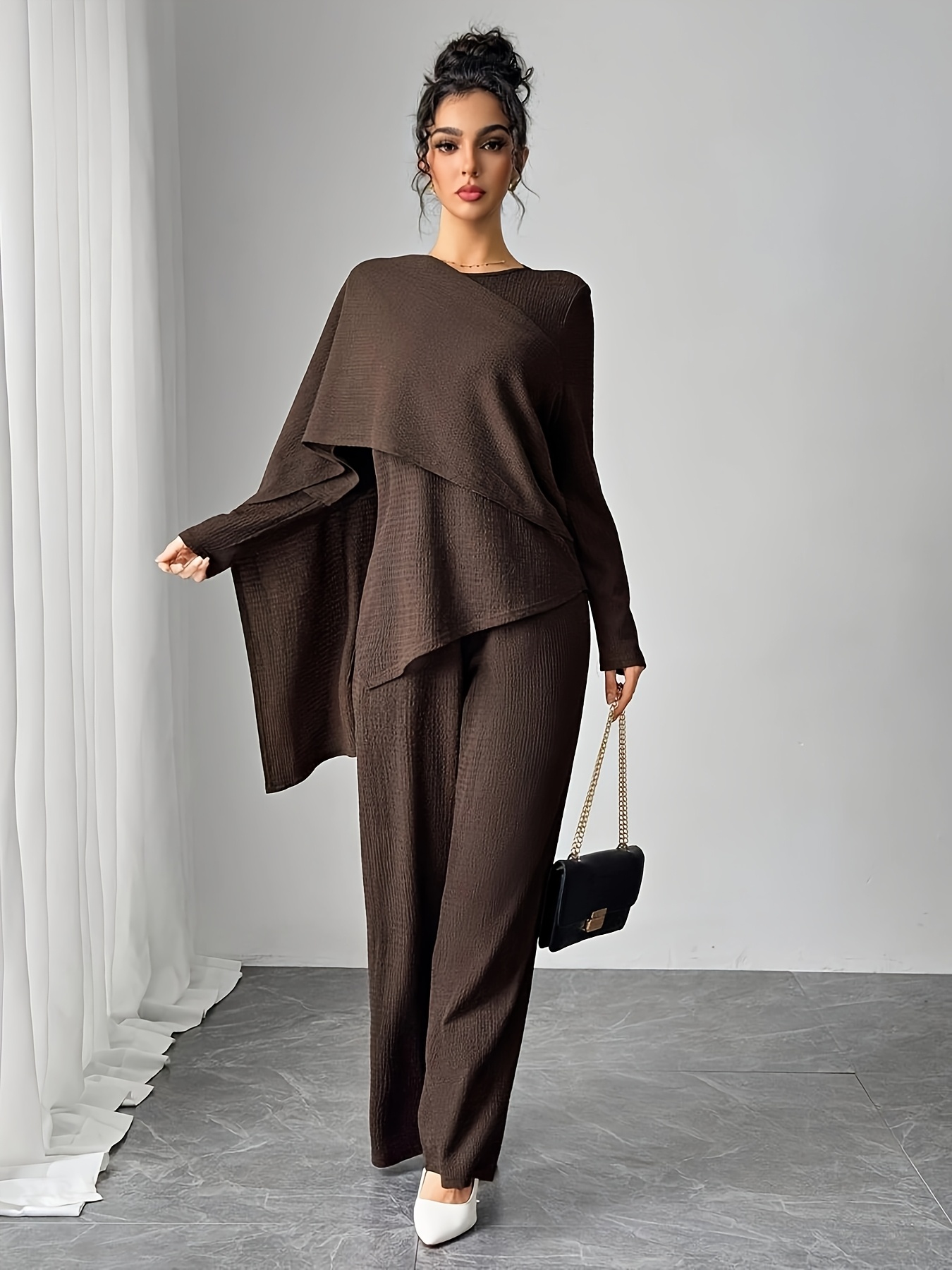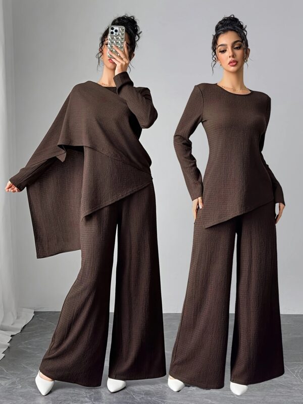 اقتني هذا الطقم الفريد وأضيفي لمسة من الرقي والعملية إلى خزانة ملابسكِ. أناقة، راحة، وتصميم يدوم، كل ذلك في طقم واحد.