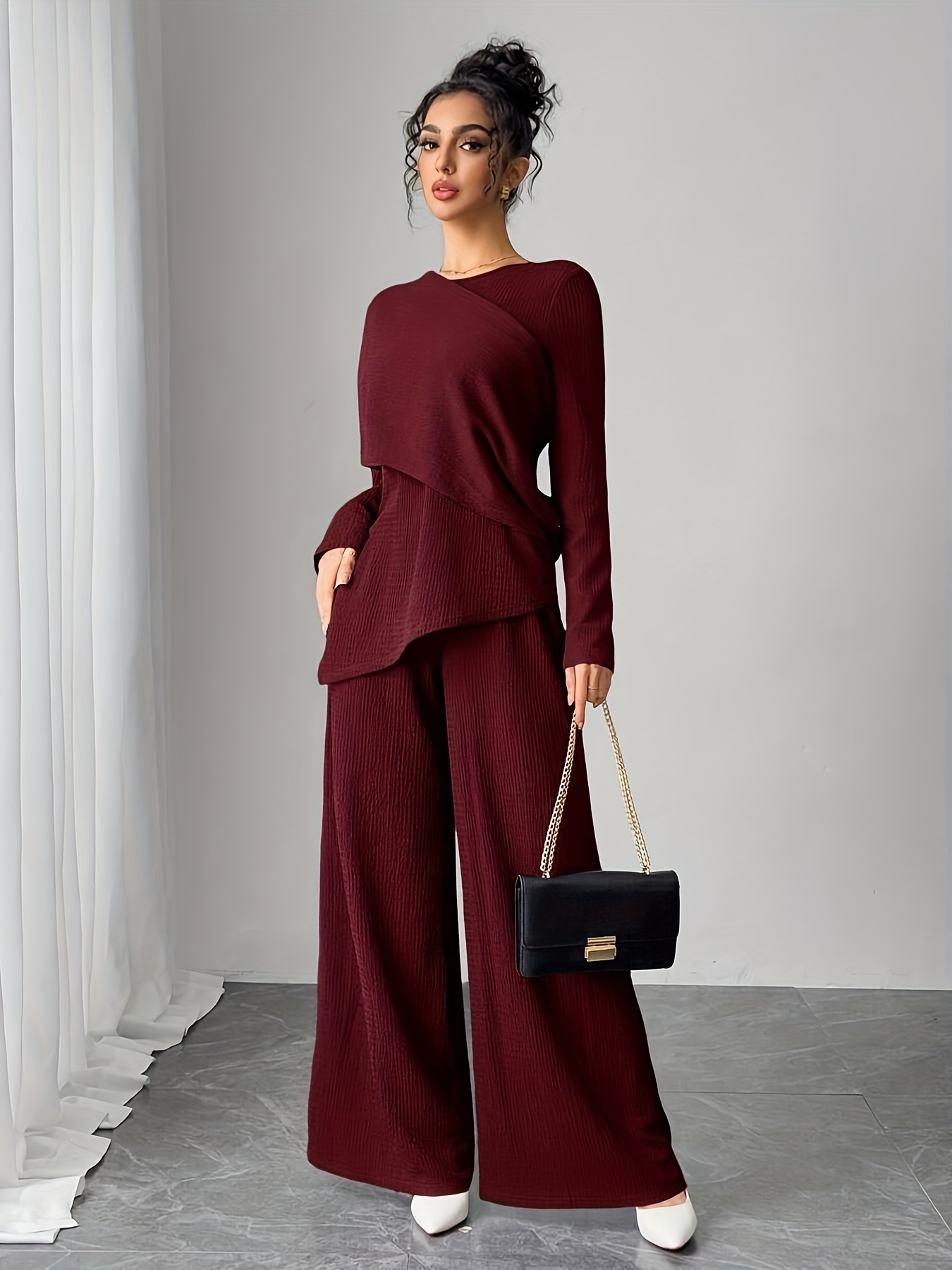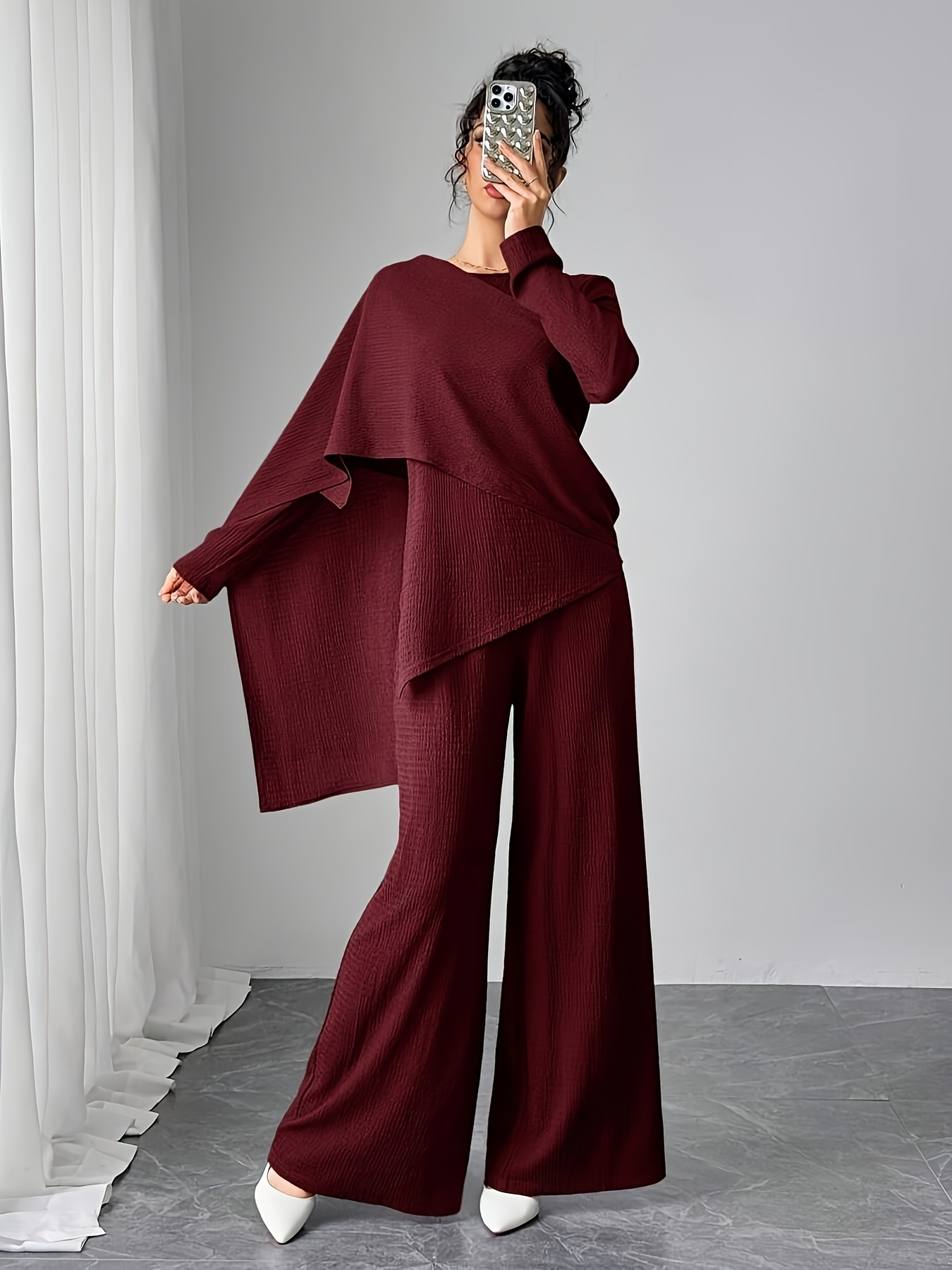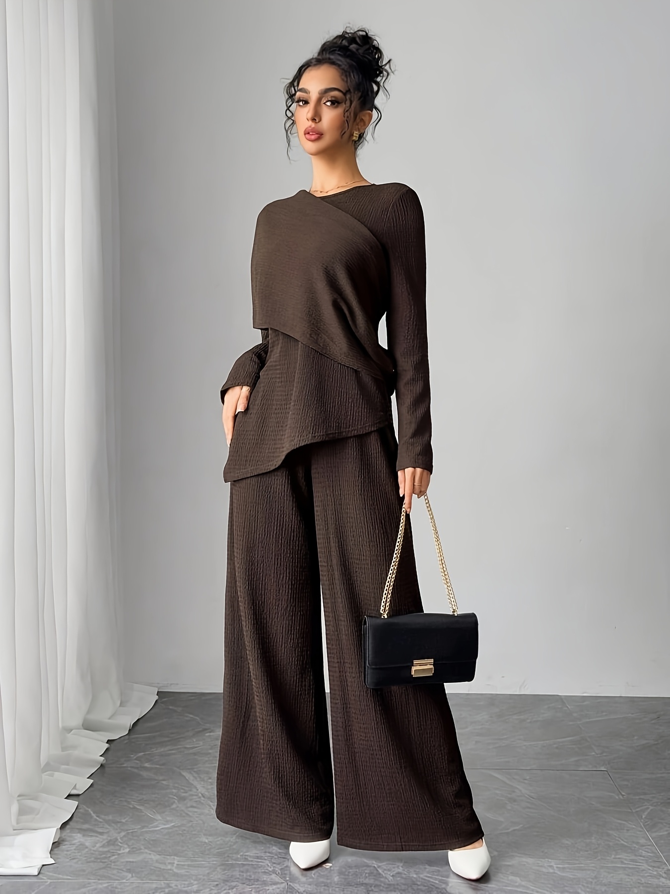 اقتني هذا الطقم الفريد وأضيفي لمسة من الرقي والعملية إلى خزانة ملابسكِ. أناقة، راحة، وتصميم يدوم، كل ذلك في طقم واحد.