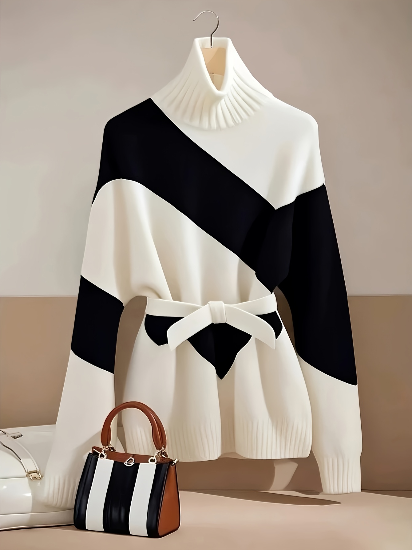 - تصميم عصري وجذاب: تتميز برقبة عالية أنيقة تحميكِ من البرد، وتصميم مخطط يضفي لمسة جمالية لافتة للنظر، يجعلكِ محط الأنظار أينما ذهبتِ.