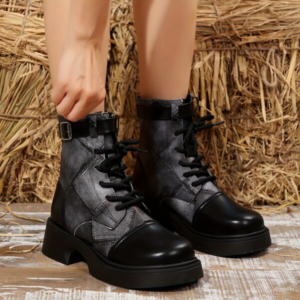- إغلاق سهل ومميز: بفضل السحاب الجانبي العملي، يمكنكِ ارتداؤها وخلعها بسهولة، بينما يضيف الرباط الأمامي وحزام الإبزيم لمسة أناقة عصرية وجريئة.