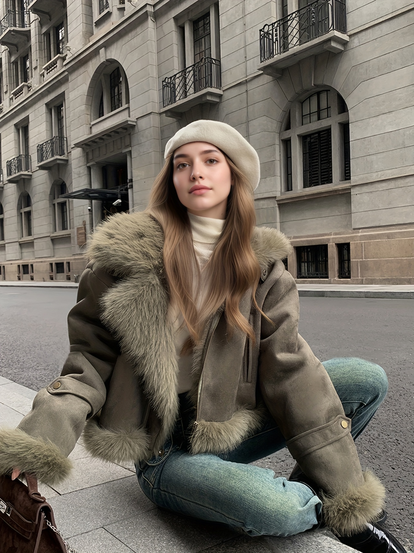 - ياقة فرو كاملة: ياقة فرو فخمة بطول كامل تمنحك دفئًا إضافيًا ومظهرًا جذابًا.
