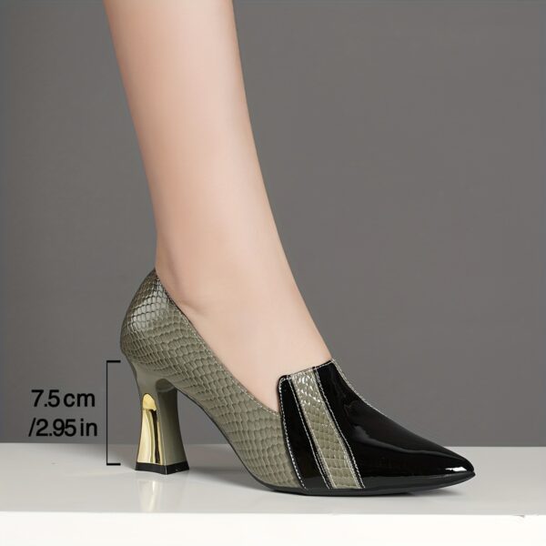 - تصميم مدبب أنيق: تضفي المقدمة المدببة لمسة من الرقي والجاذبية الكلاسيكية على إطلالتكِ، مما يجعلكِ محط الأنظار ويعكس ذوقكِ الرفيع في اختيار التفاصيل.