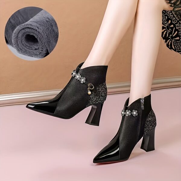 ارتقي بأسلوبك وانطلقي بثقة لا تتزعزع مع حذاء الكاحل المدبب اللامع، الذي يجسد الأناقة العصرية والجاذبية الخالدة. هذا الحذاء ليس مجرد إضافة لمجموعتك، بل هو بيان يضيف لمسة من الجرأة والرقي إلى كل إطلالة، من النهار إلى المساء. صُمم ليمنحك الراحة والثبات دون المساومة على الفخامة والتألق.