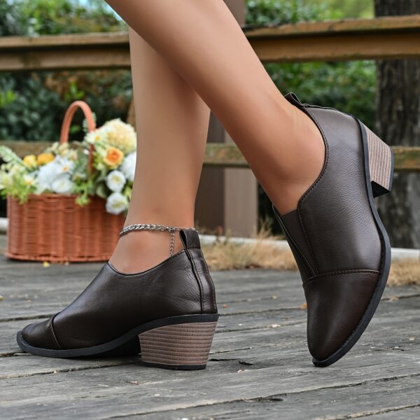 • تصميم أنيق وعصري: يتميز بمقدمة مدببة جذابة وكعب سميك يمنحانك إطلالة راقية وعصرية، مثاليًا لعاشقات الموضة والباحثات عن الأناقة في كل مناسبة.