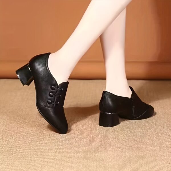 - راحة تدوم: مزود بكعب سميك متوسط الارتفاع يمنحك الثبات والراحة طوال اليوم، دون التضحية بالأناقة.