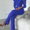 تألقي بأبهى صورك مع هذا الجمبسوت الساحر باللون الأزرق الملكي، المصمم ليمنحك إطلالة لا تُنسى في كل مناسباتك الخاصة. يجمع هذا التصميم الفاخر بين الرقي والراحة، مما يجعله الخيار الأمثل للسهرات والحفلات الرسمية والمناسبات الأنيقة على مدار العام.