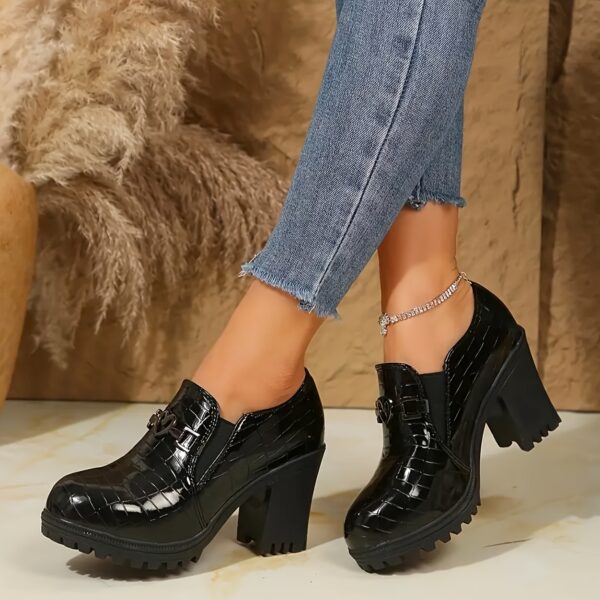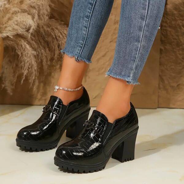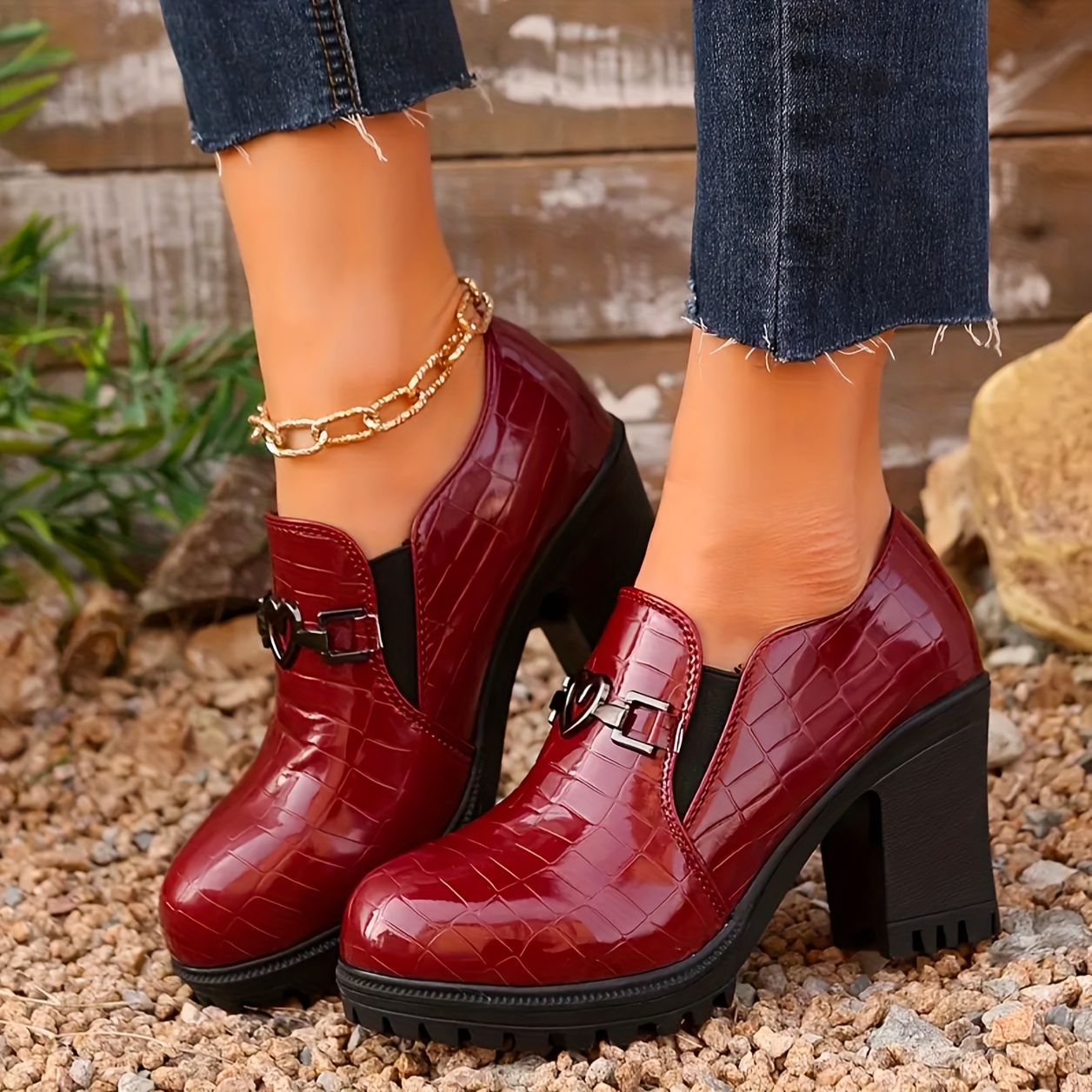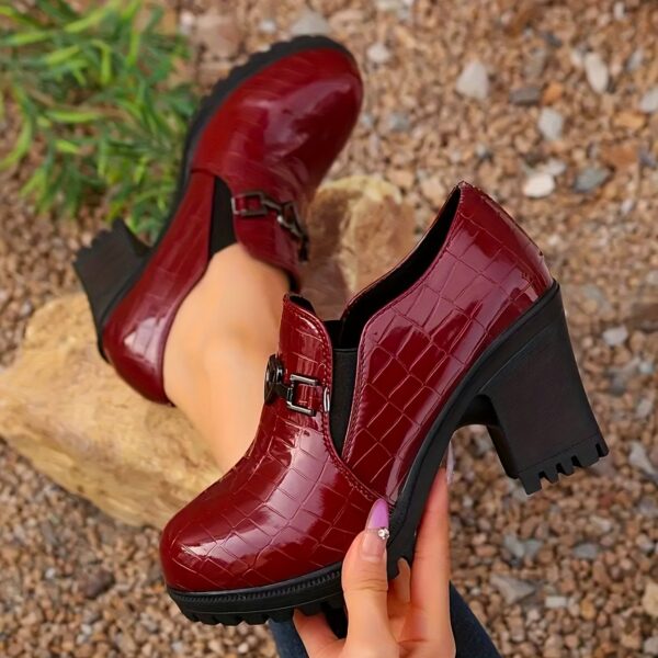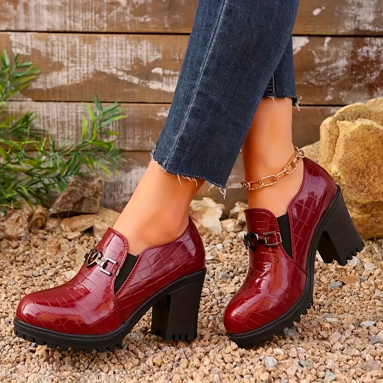 • كعب سميك مريح: يمنحكِ الكعب السميك الارتفاع الأنيق مع الثبات والراحة التي تحتاجينها، لتتألقي دون الشعور بالتعب أو عدم التوازن.