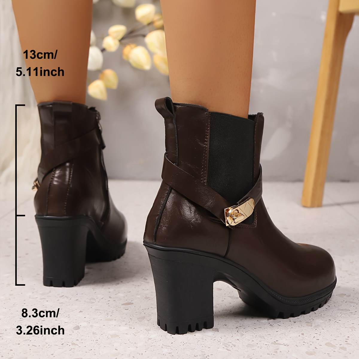 • تصميم عصري وجذاب: يتميز بلونه البني الدافئ وتصميمه البسيط والأنيق، مع كعب عريض (بلوك) ومنصة مرتفعة تمنحك إطلالة عصرية جريئة ومميزة تلفت الأنظار في كل مناسبة.