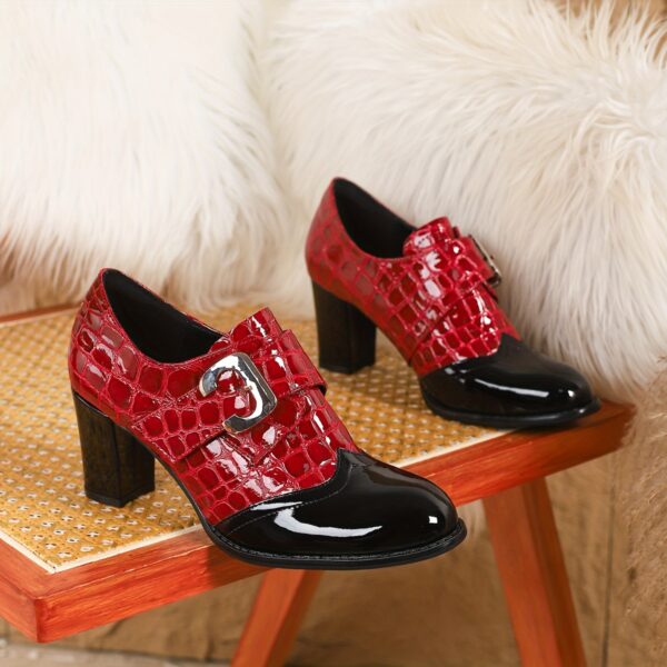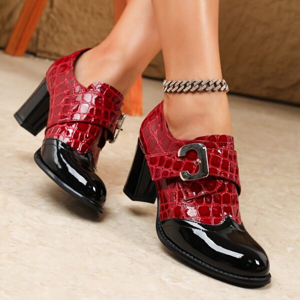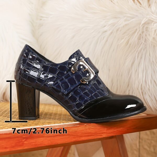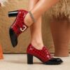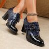 - راحة وثبات لا مثيل لهما: مزود بكعب بلاتفورم سميك يوفر الثبات والدعم الفائقين، مع مقدمة دائرية تضمن الراحة التامة لقدميك طوال اليوم، سواء كنت في العمل أو في أمسية احتفالية.