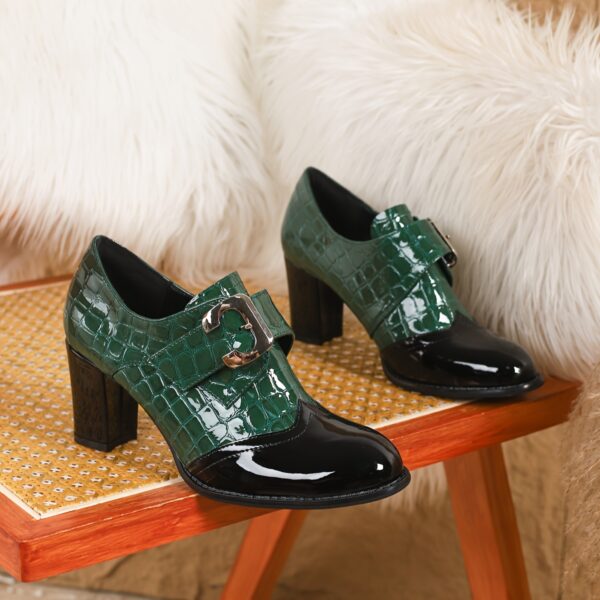 هل تبحثين عن قطعة مميزة تضفي لمسة من الجرأة والأناقة على إطلالتك؟ نقدم لك حذاء أوكسفورد النسائي الجديد، بتصميمه المذهل ونقشة جلد الأفعى اللامعة باللون الأخضر الجذاب، لترتقي بأسلوبك إلى مستويات غير مسبوقة. هذا الحذاء ليس مجرد إكسسوار، بل هو بيان يجسد الثقة والتميز في كل خطوة.
