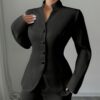 اجعلي هذا الطقم جزءًا أساسيًا من خزانة ملابسك واستمتعي بإطلالة تجمع بين الأناقة العملية والراحة الفائقة في كل مرة ترتدينه.