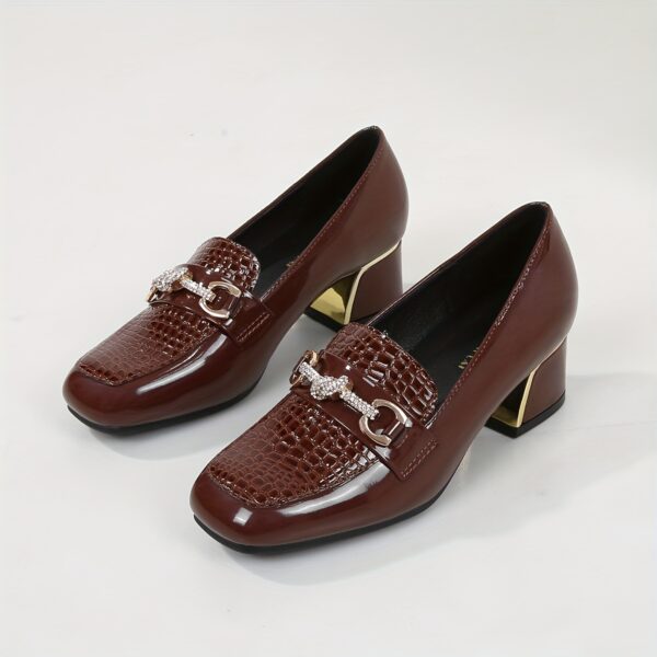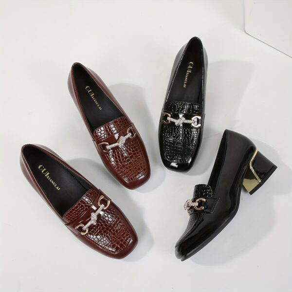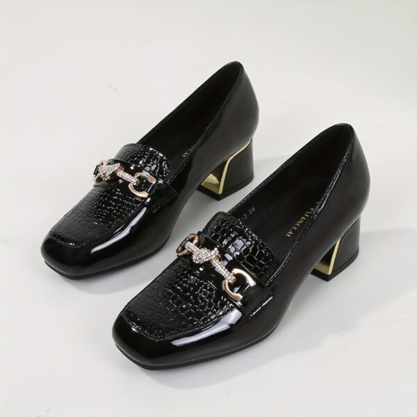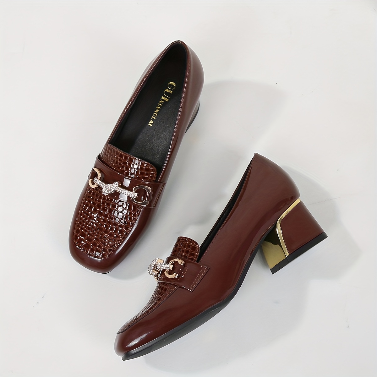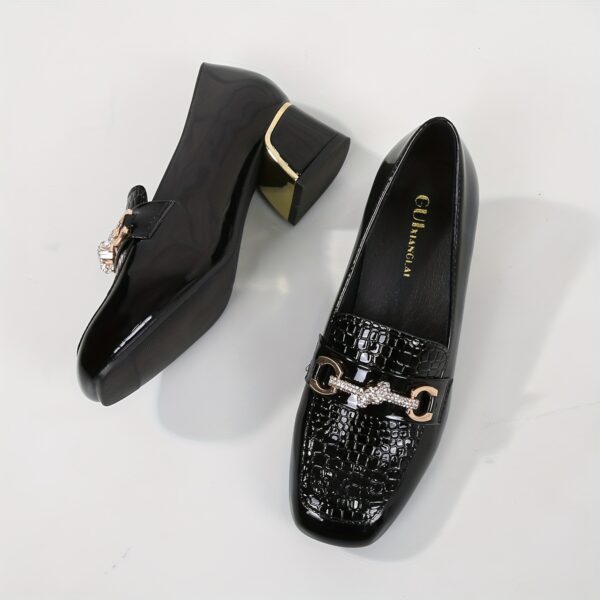 - لمسة لامعة فاخرة: الجزء العلوي بلمسة لامعة جذابة وإبزيم ذهبي أنيق يضفيان لمسة من الرقي والفخامة على حذائكِ، لتتألقي في كل مكان تذهبين إليه.