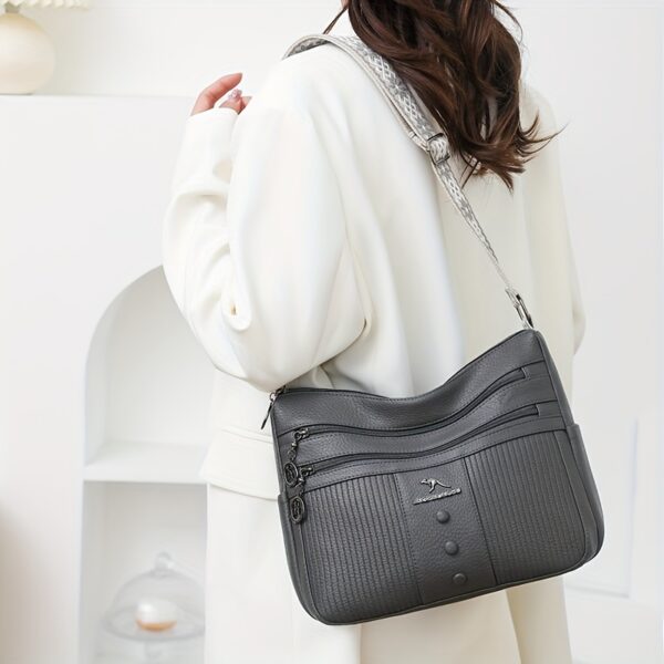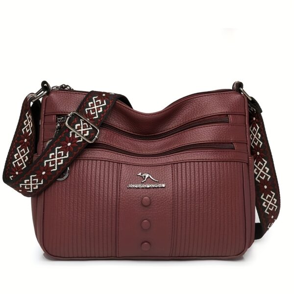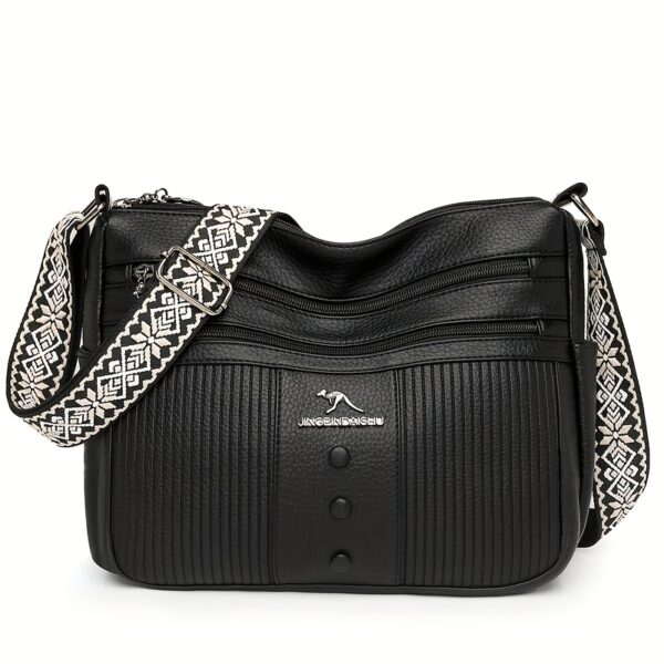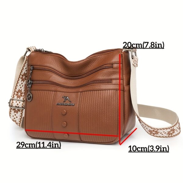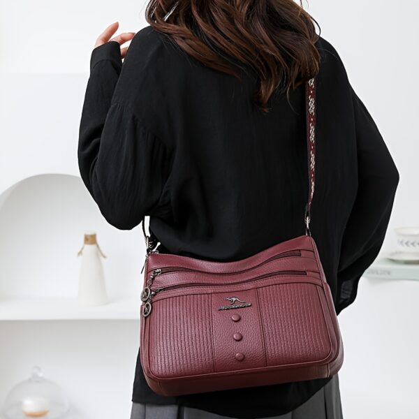 - جودة لا تضاهى: مصنوعة من جلد البولي يوريثان (PU) عالي الجودة وبطانة داخلية من البوليستر المتين، لتضمن لكِ حقيبة تتحمل الاستخدام اليومي وتحافظ على جمالها.