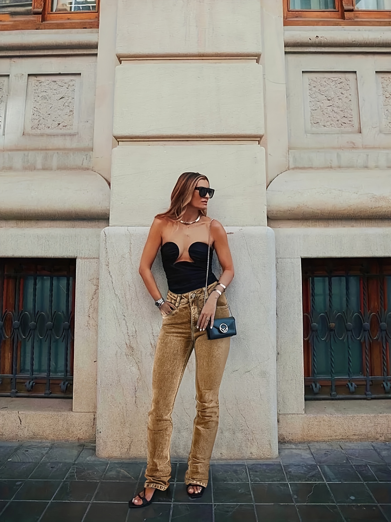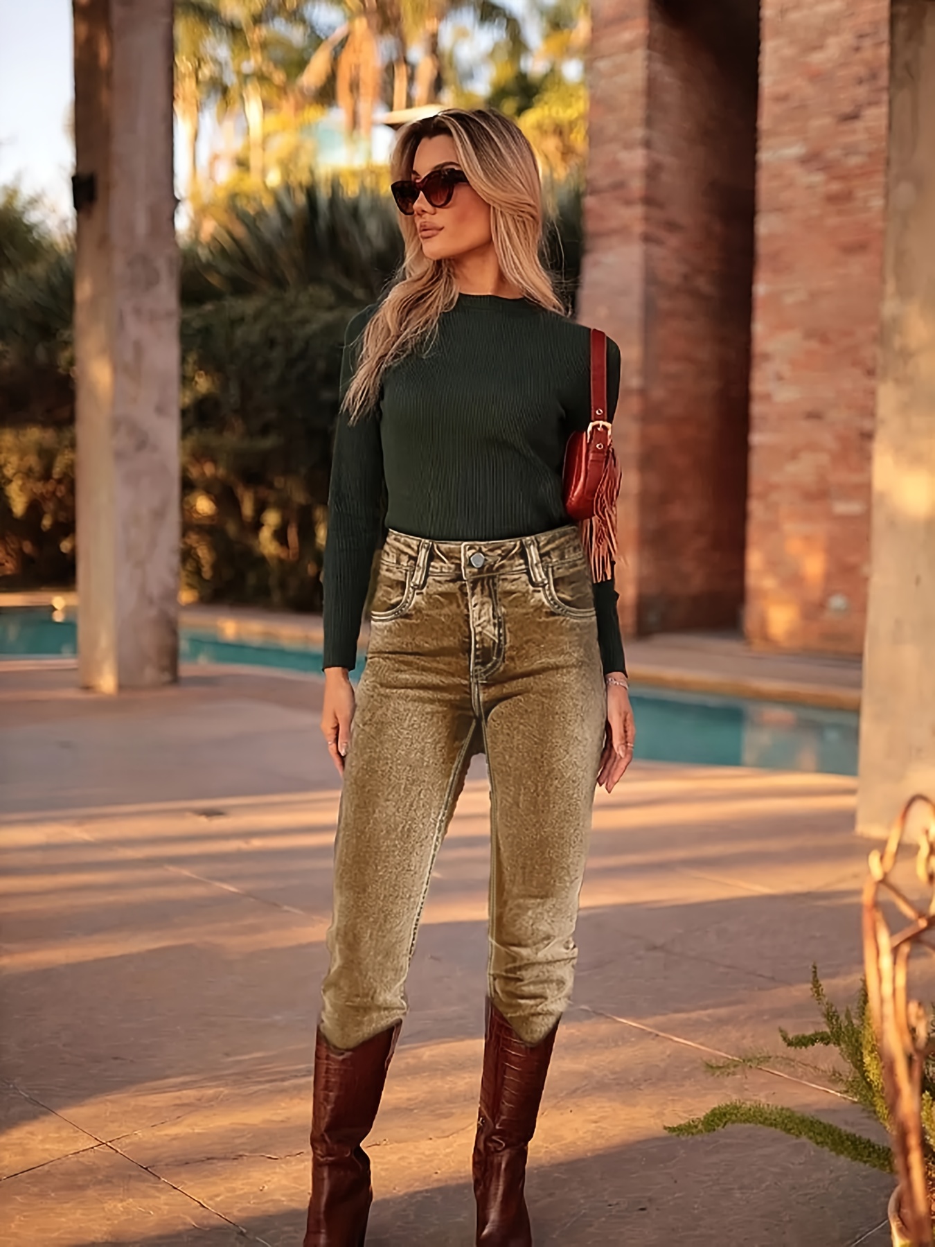ارتقي بإطلالتك اليومية مع بنطلون الجينز النسائي الرائع هذا، الذي يجمع بين أناقة التصميم العتيق والراحة العصرية. صُمم هذا الجينز عالي الخصر بقصة سكيني ليبرز جمال قوامك، مع تفاصيل حواف ممزقة تضيف لمسة جريئة وعصرية، كل ذلك بلونه البيج/البني الفاتح الأنيق الذي يسهل تنسيقه لإطلالات لا تُنسى.