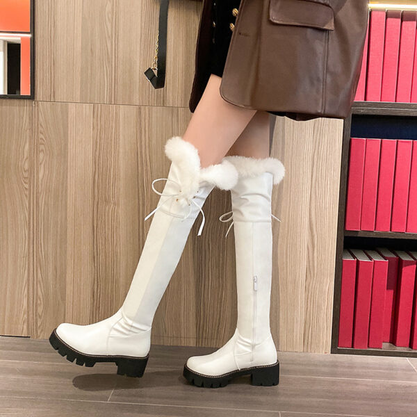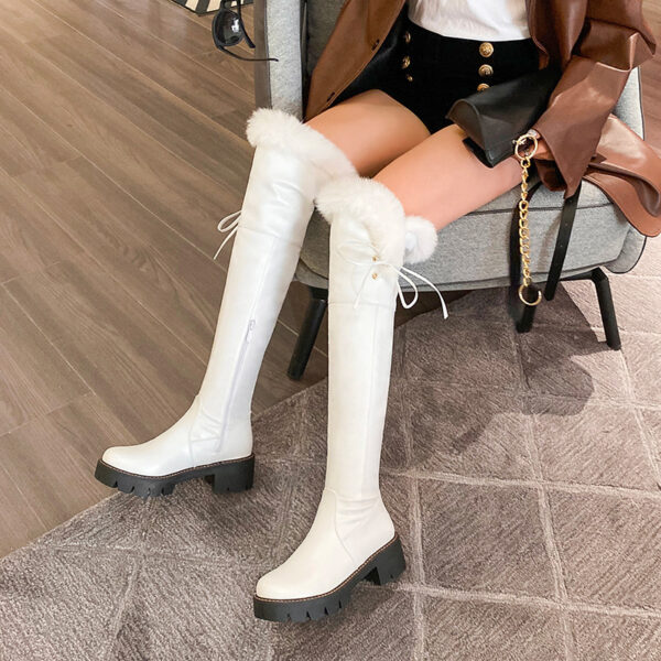 استقبلي فصل الشتاء بأناقة لا مثيل لها ودفء يغمركِ مع بوت الركبة الأبيض الفاخر! تصميم يجمع بين الرقي والراحة المطلقة، ليمنحكِ إطلالة ساحرة ومميزة في كل مناسباتكِ. هذا البوت ليس مجرد حذاء، بل هو رفيقكِ المثالي لمواجهة الأجواء الباردة بأسلوب يسرق الأنظار ويبرز جمالكِ.