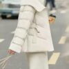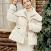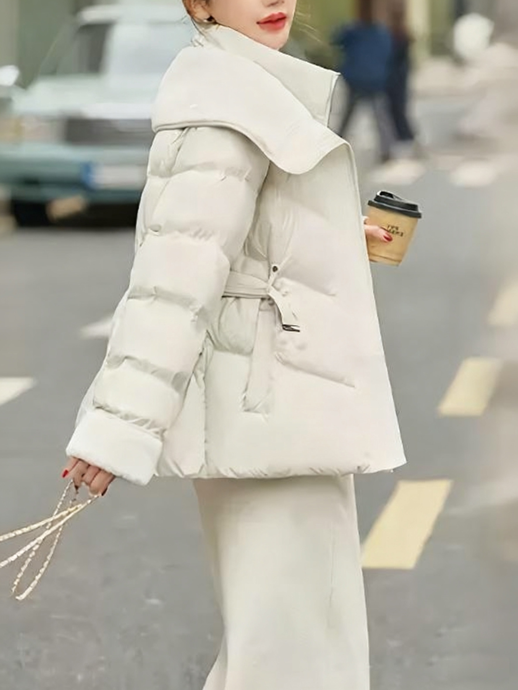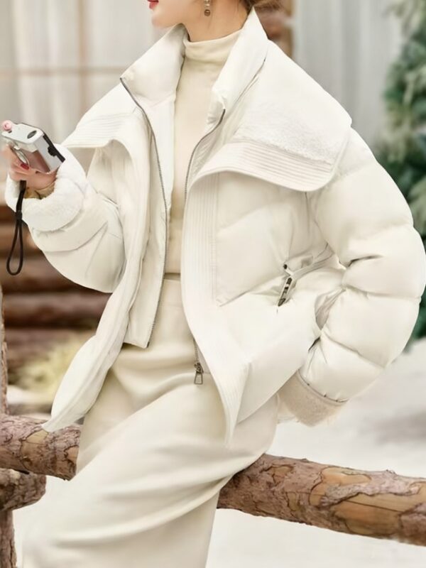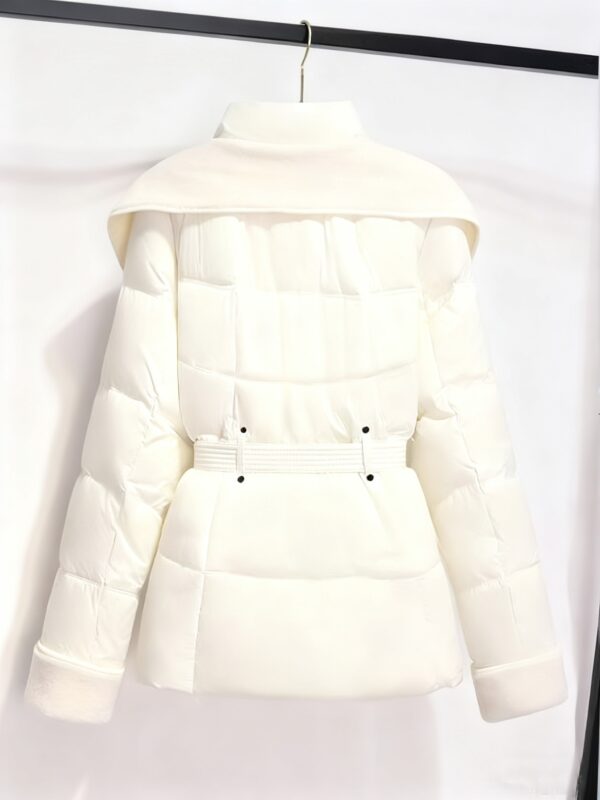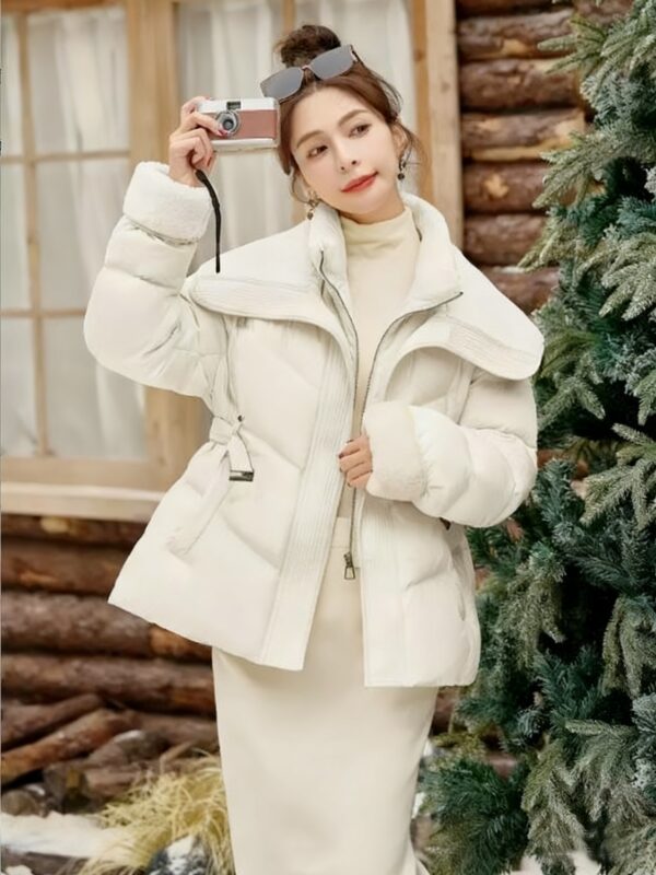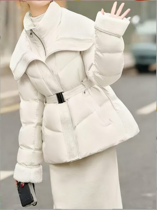 معطف الشتاء القصير النسائي الجديد 2025: دفء وأناقة بياقة مزدوجة وحزام تحديد الخصر