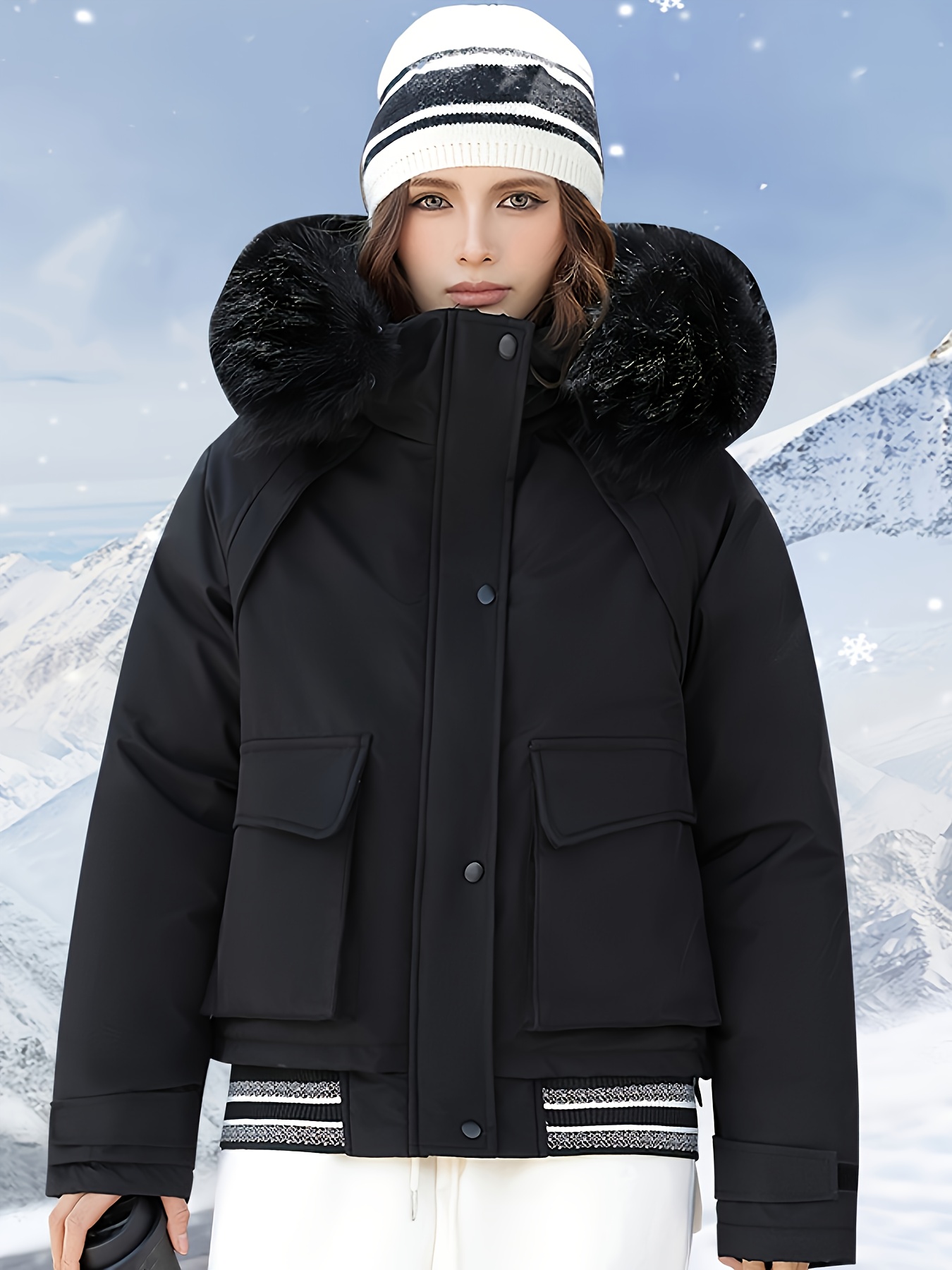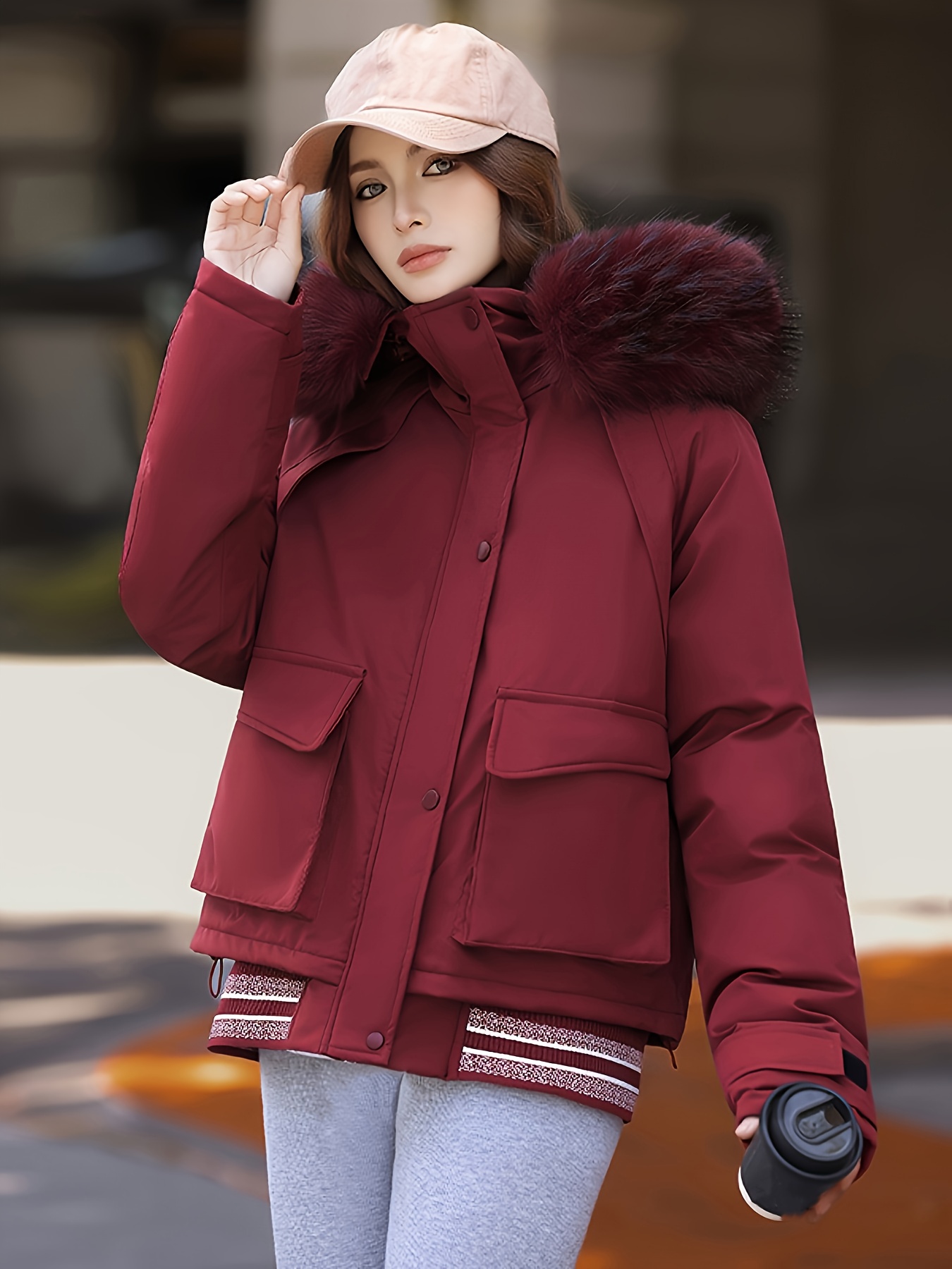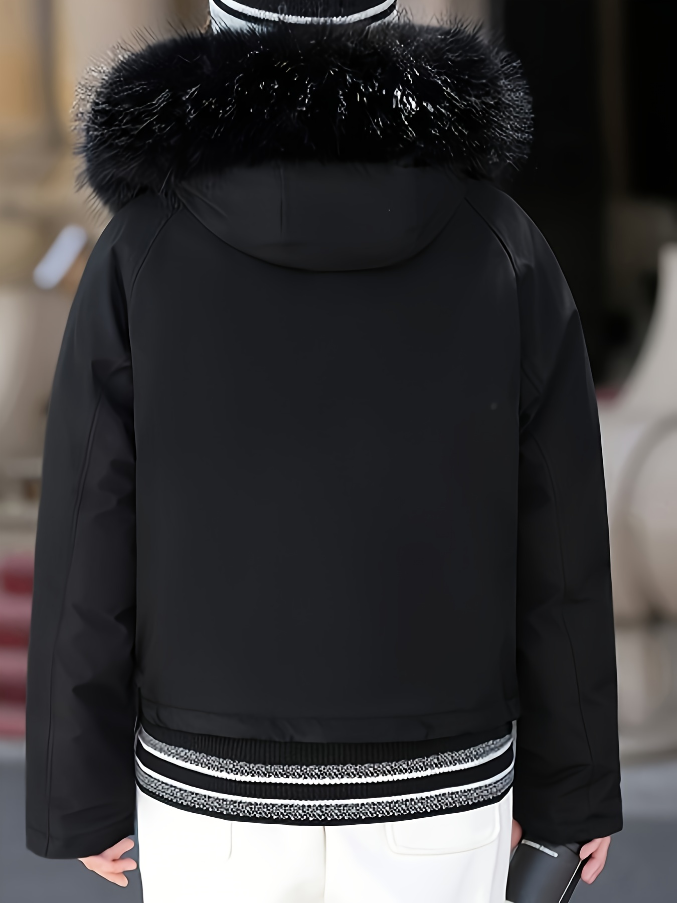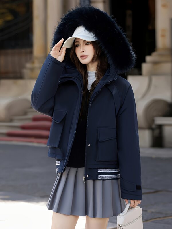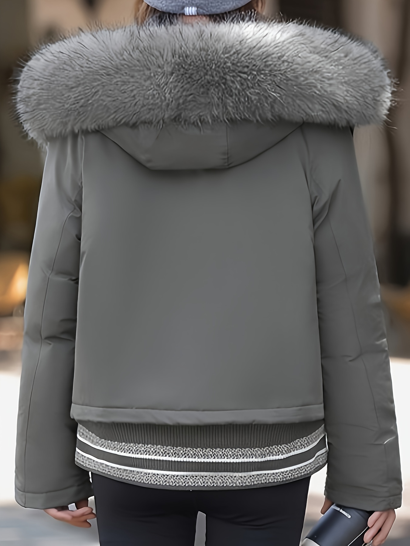 - تصميم أنيق وعصري: يتميز بغطاء رأس فضفاض ويشمل ياقة وأساور من الفرو الصناعي الفاخر، بالإضافة إلى ياقة مصممة بعناية تضفي لمسة من الرقي.