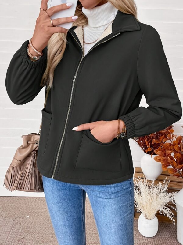 • جيوب عملية بسحاب: يوفر مساحة تخزين آمنة ومريحة لمقتنياتك الصغيرة، مع إضافة تفاصيل عصرية وعملية تعزز من وظائف الجاكيت.