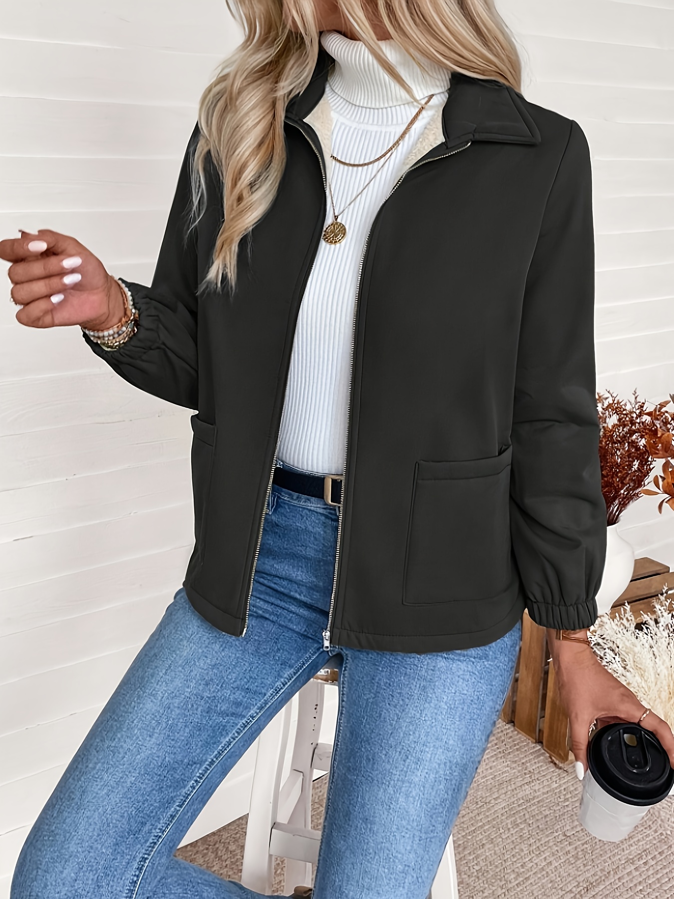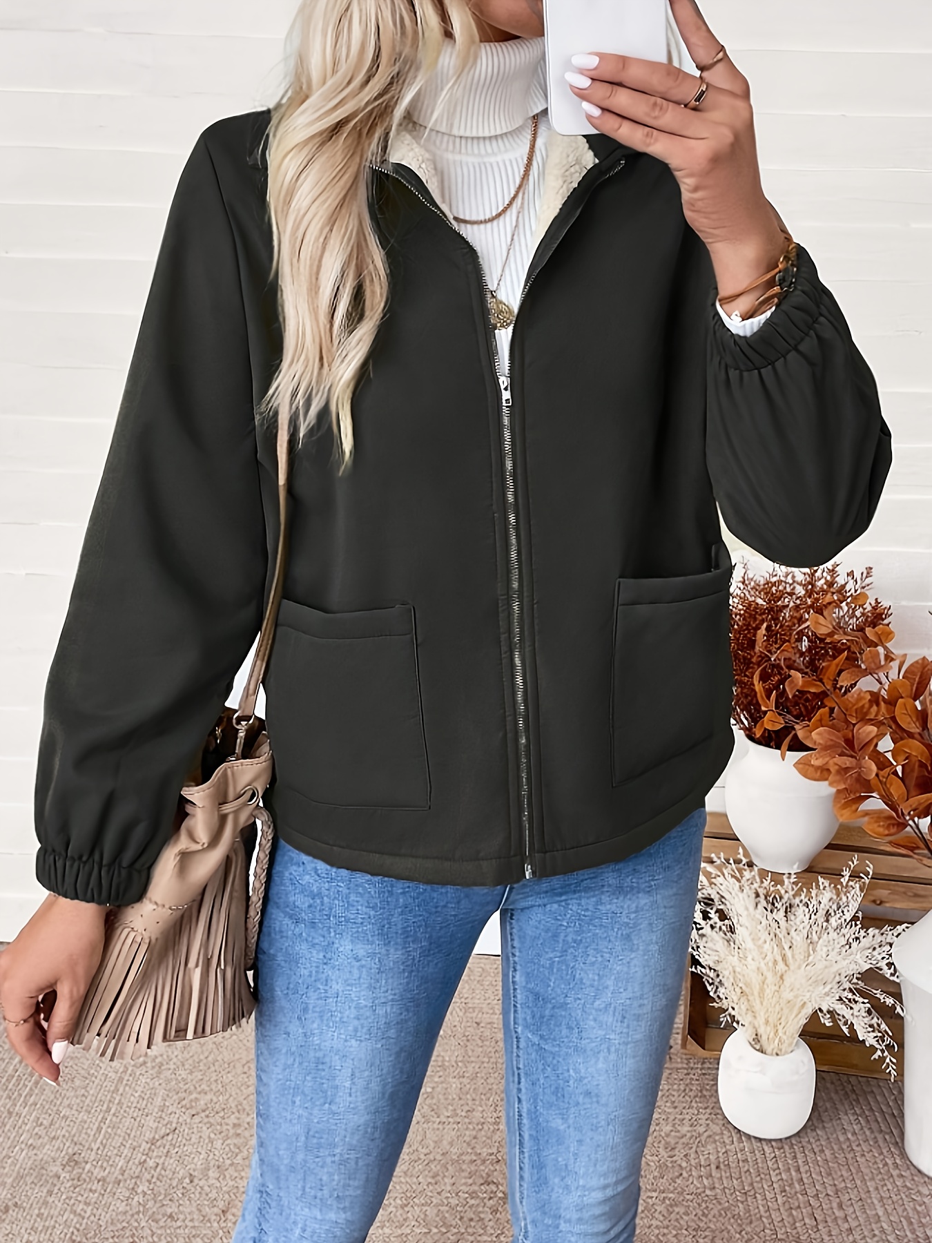 • جيوب عملية بسحاب: يوفر مساحة تخزين آمنة ومريحة لمقتنياتك الصغيرة، مع إضافة تفاصيل عصرية وعملية تعزز من وظائف الجاكيت.