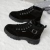 • تصميم عملي ومريح: مع كعب مسطح ونعل سميك يوفر دعماً ممتازاً لقدميكِ، يضمن لكِ هذا البوت أقصى درجات الراحة حتى بعد ساعات طويلة من الارتداء، مما يجعله خياركِ الأمثل للأنشطة اليومية.