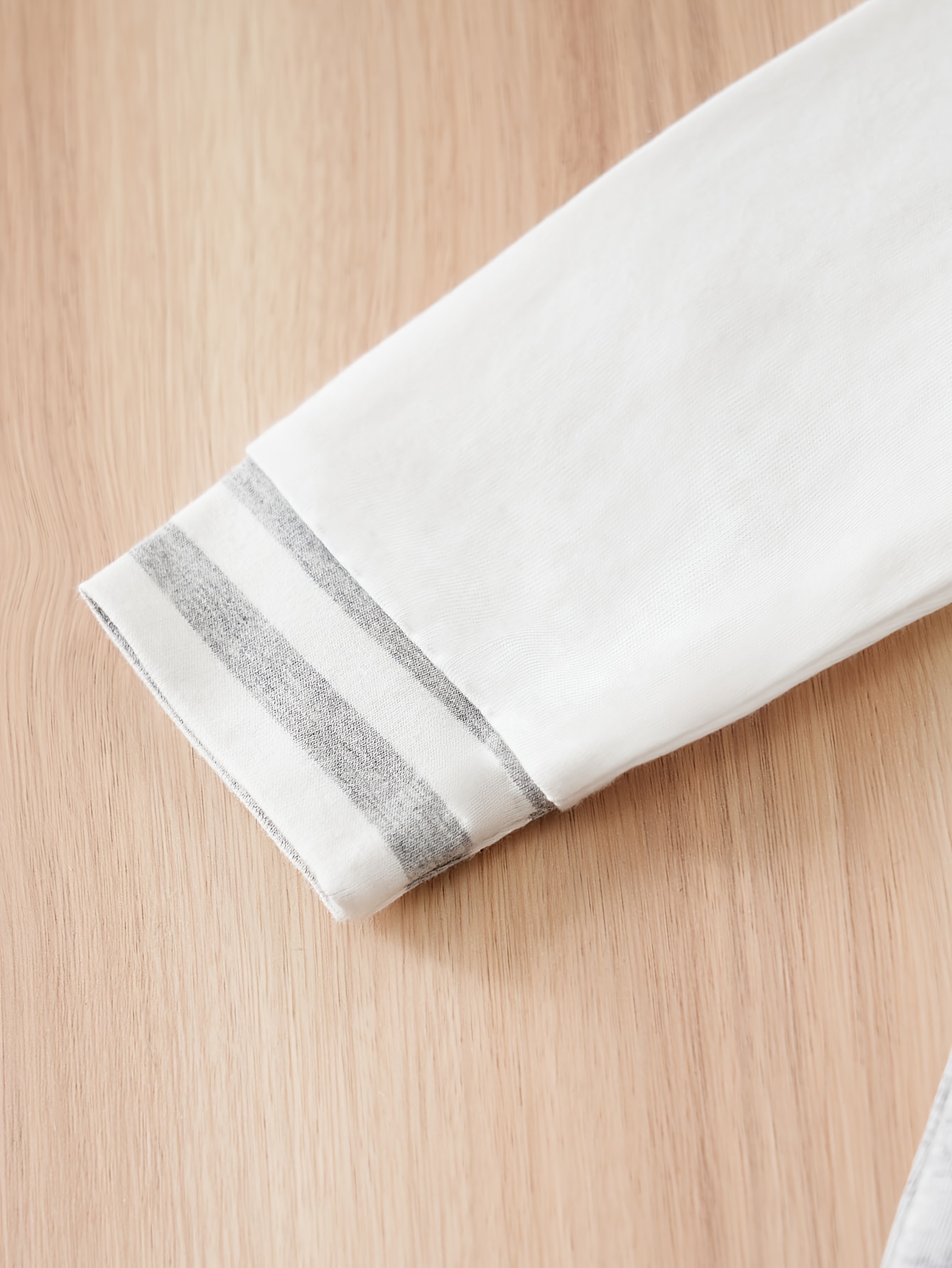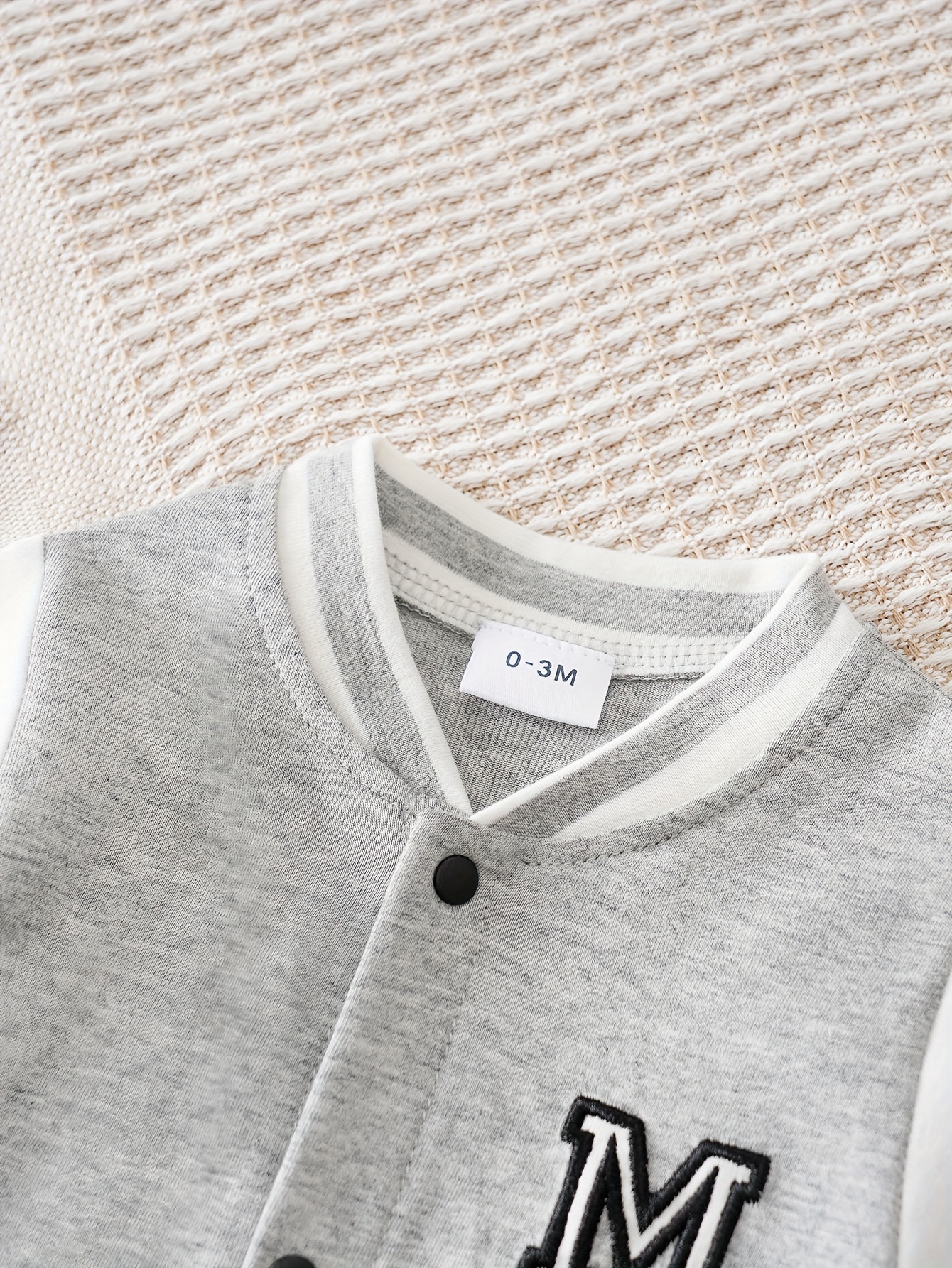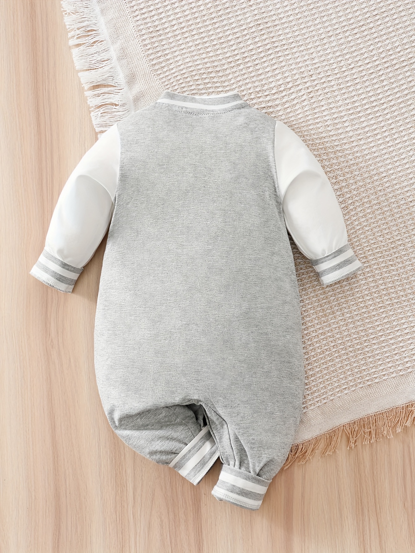 امنح صغيرك إطلالة عصرية ومريحة في آن واحد مع أوفرول البيسبول الرمادي الأنيق! صُمم هذا الأوفرول ليجمع بين الأناقة العصرية والراحة الفائقة، مما يجعله الخيار الأمثل لطفلك النشيط الذي يحب الاستكشاف واللعب. دعه يتميز بأسلوب فريد ومريح في كل مغامراته اليومية.